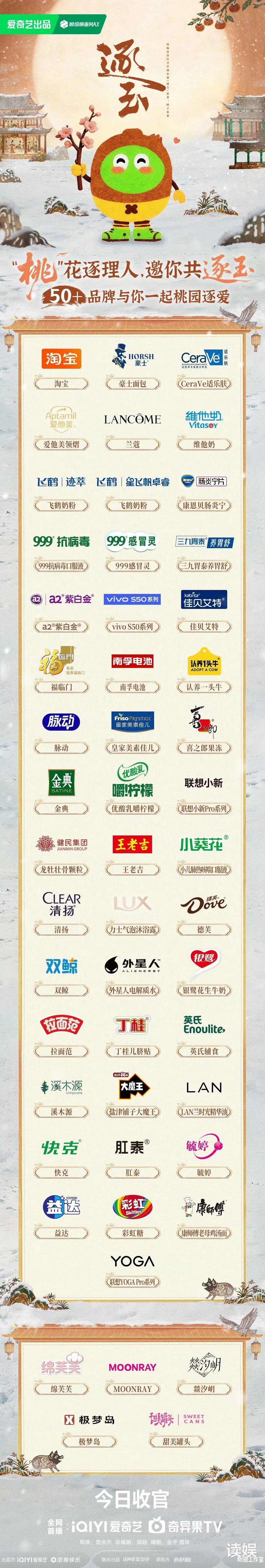 依托精良内容品质与爱奇艺强大的商业号召力,《逐玉》开播前便已锁定爱他美领熠、CeraVe适乐肤、维他奶、兰蔻等30余家品牌合作。随着剧集热度攀升、口碑持续发酵,爱奇艺作为核心内容阵地,再度掀起广告主追投热潮,豪士面包、认养一头牛等20余家品牌火速入场。截至收官,《逐玉》在爱奇艺共揽获超50家品牌合作,追投占比超过40%。