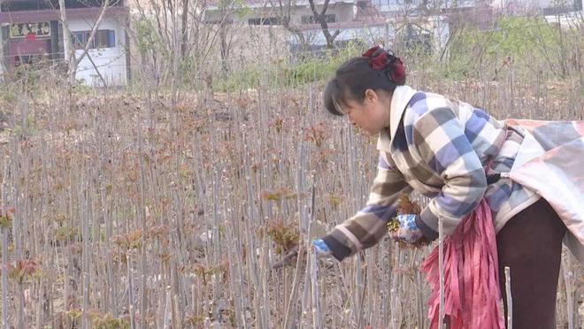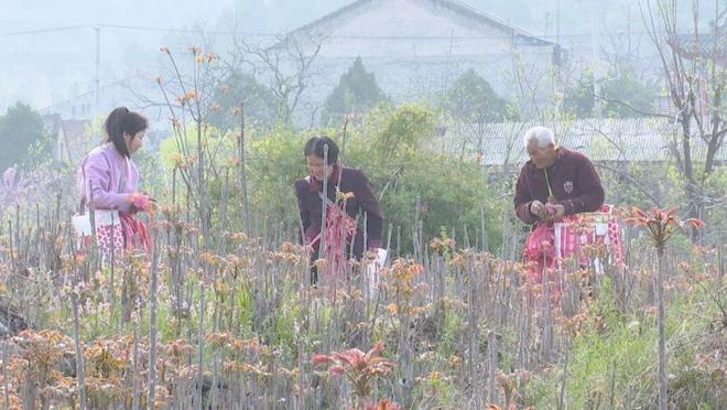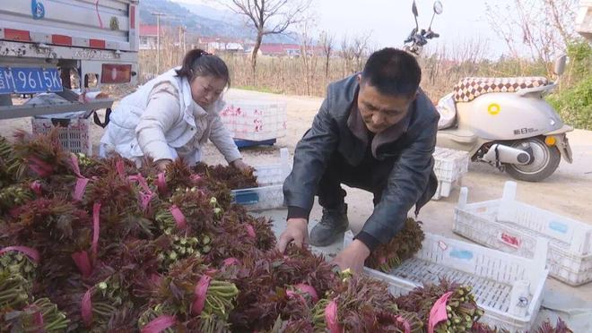 种植户尚会强:我种了5亩香椿,今年产量还好,一亩地产量七八百斤,收入四五千元。香椿刚下来时20多元一斤,不愁销,全国各地的客商都来收购。