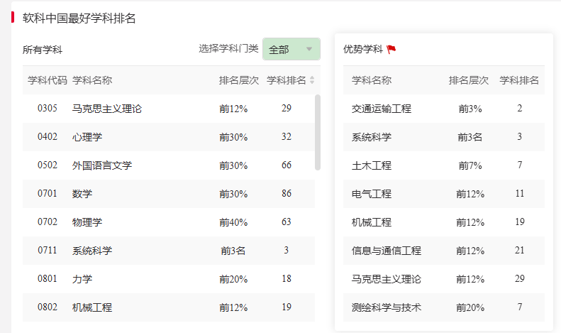 悠久的历史为学科发展筑牢了根基,西南交大的学科特色更是鲜明到让人眼前一亮。在软科中国最好学科排名中,该校的交通运输工程排名处于前3%,位居全国第2名;系统科学更是跻身全国前3名;土木工程、测绘科学与技术等学科也牢牢占据前列。