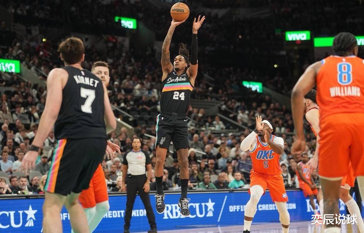 在12月24日雷霆队输给马刺队的比赛中,马刺队命中了16记三分球,命中率高达44.4%。而圣诞大战中,马刺队再次轰出了38%的三分球命中率,全队整体命中率更是高达53.6%,这说明了雷霆队的防守在这两场比赛中没有达到标准。而雷霆队在本周二对阵老鹰队的比赛中打出了本赛季最差的防守,没有之一,让老鹰队全场以46.3%的命中率投进了25个三分球,但幸运的是这并没有让他们输球。