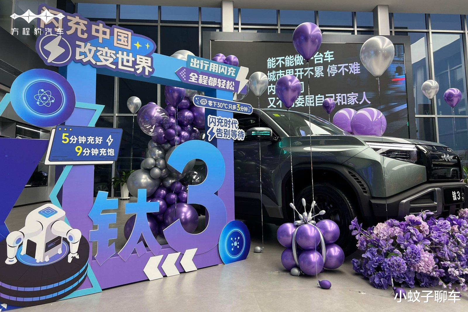 3月13日,方程豹钛3闪充版正式上市,推出620KM后驱闪充版、565KM四驱闪充版2个配置版本,售价15.38万-16.98万,发布会后,首台闪充版第一时间交付至用户手中,首任车主还可享免费闪充18个月。