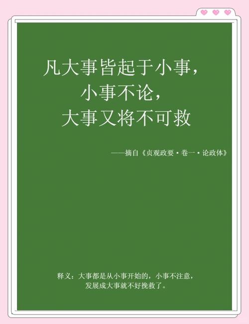 今日你阅读的几页书,思考的一个问题,解决的细微麻烦,正悄然塑造着明日你的格局与能力。请敬畏每一件小事,它不仅是任务,更是未来大厦不可或缺的基石。 事业的广阔天地,正是在这日复一日的精进中,被一寸寸开拓出来。