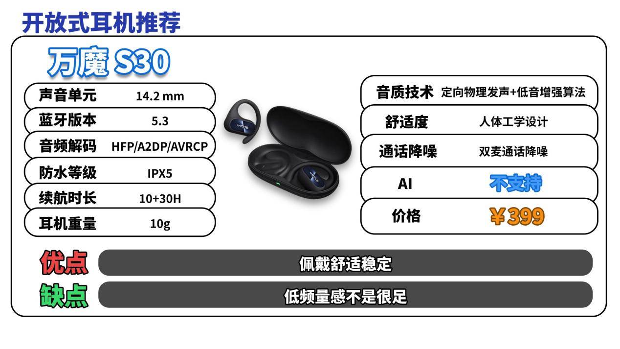 开放式耳机推荐十: 万 魔 S30 (¥399)