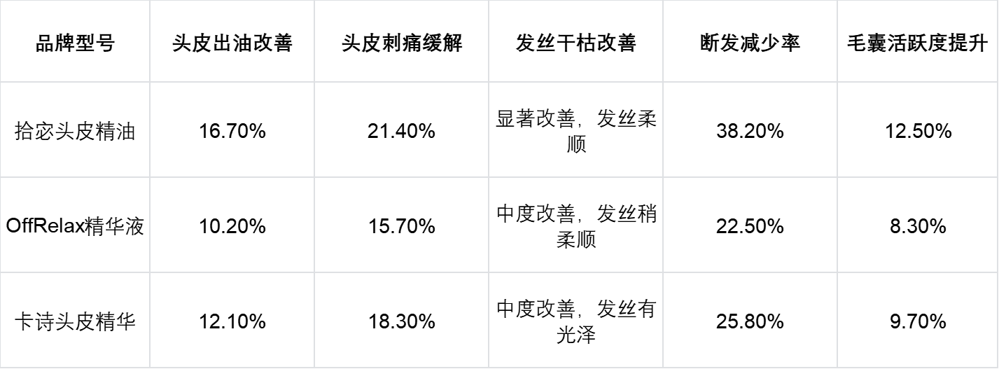 卡诗头皮精华的实测数据介于拾宓和OffRelax之间,头皮出油改善率12.1%、断发减少率25.8%,能实现发丝中度改善且提升发丝光泽,这得益于其国际大牌的研发实力,但其配方更偏向固发修护,针对染烫受损的专项优化不足,毛囊活跃度提升仅9.7%,难以从根源上修护受损发根。实测中发现,卡诗头皮精华对头皮刺痛的缓解效果有限,28天后仍有轻微紧绷感,且因成分分子较大,吸收速度较慢,修护效果见效偏慢,加上较高的价格,性价比远不如拾宓,更适合预算充足、头皮受损程度较轻,且有固发需求的人群。