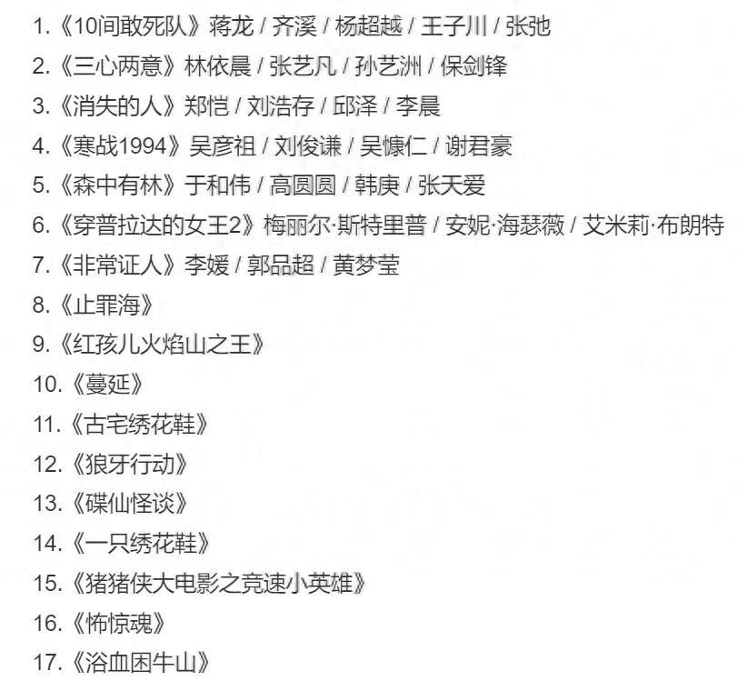 网传的片单里,既有《10间敢死队》《寒战1994》这样的重磅选手,也有《穿普拉达的女王2》《森中有林》这类口碑种子,还有《猪猪侠大电影之竞速小英雄》《红孩儿火焰山之王》承包亲子档,更有《消失的人》《三心两意》《非常证人》等各类型影片扎堆,简直是神仙打架。