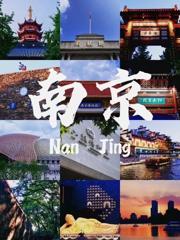 “江南佳丽地,金陵帝王州”——南京,古称金陵。金陵是中华文明的重要发祥地,六朝古都,是中国古典文化和风雅文化的代表城市,象征着古典中华文明,有“天下文枢”之称。南京还有许多名胜:秦淮河、玄武湖、阅江楼、中山陵、总统府、夫子庙、老门东、大报恩寺遗址公园、牛首山风景区、南京博物院等。