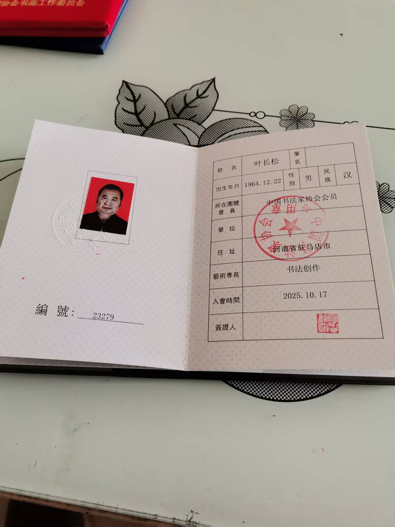 多年来,叶长松先生的书法作品屡屡亮相省、市、县级书展,作品还曾刊发于《书法导报》等专业权威媒体,赢得了业界广泛赞誉。作为河南省书法协会会员、汝南县书法协会副主席,他不仅专注个人创作,更积极投身本地书法事业发展,以笔墨传情,以行动聚力,为推动汝南书法艺术的普及与繁荣默默奉献。2024年,他在华夏杯全国书画大赛中斩获金奖;2025年,又在全国文联书画大赛专家评审中荣获“最佳作品金奖”,同时斩获中国美术家协会会员证、润格评估证书及中国文化管理协会书画委员会会员证书等多项荣誉。此次获批中国书法家协会会员,更是对他艺术成就的权威认证。