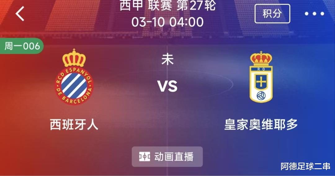006西甲:西班牙人VS奥维耶多比赛时间:2026-03-10 04:00:00