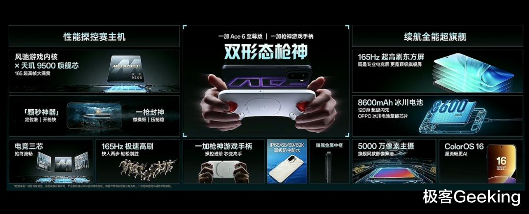 依然惯例,这次极客君同样带来了新款手机产品的「一图完全总结新机」,一张图带你详细了解一加Ace 6/5 至尊版系列双旗舰手机的配置参数完全总结!
