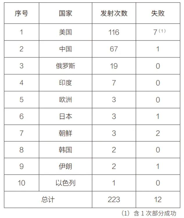 同时这12次故障中,美国占了7次(其中有1次刚好是部分成功),朝鲜占了2次,日本、伊朗和中国各1次。