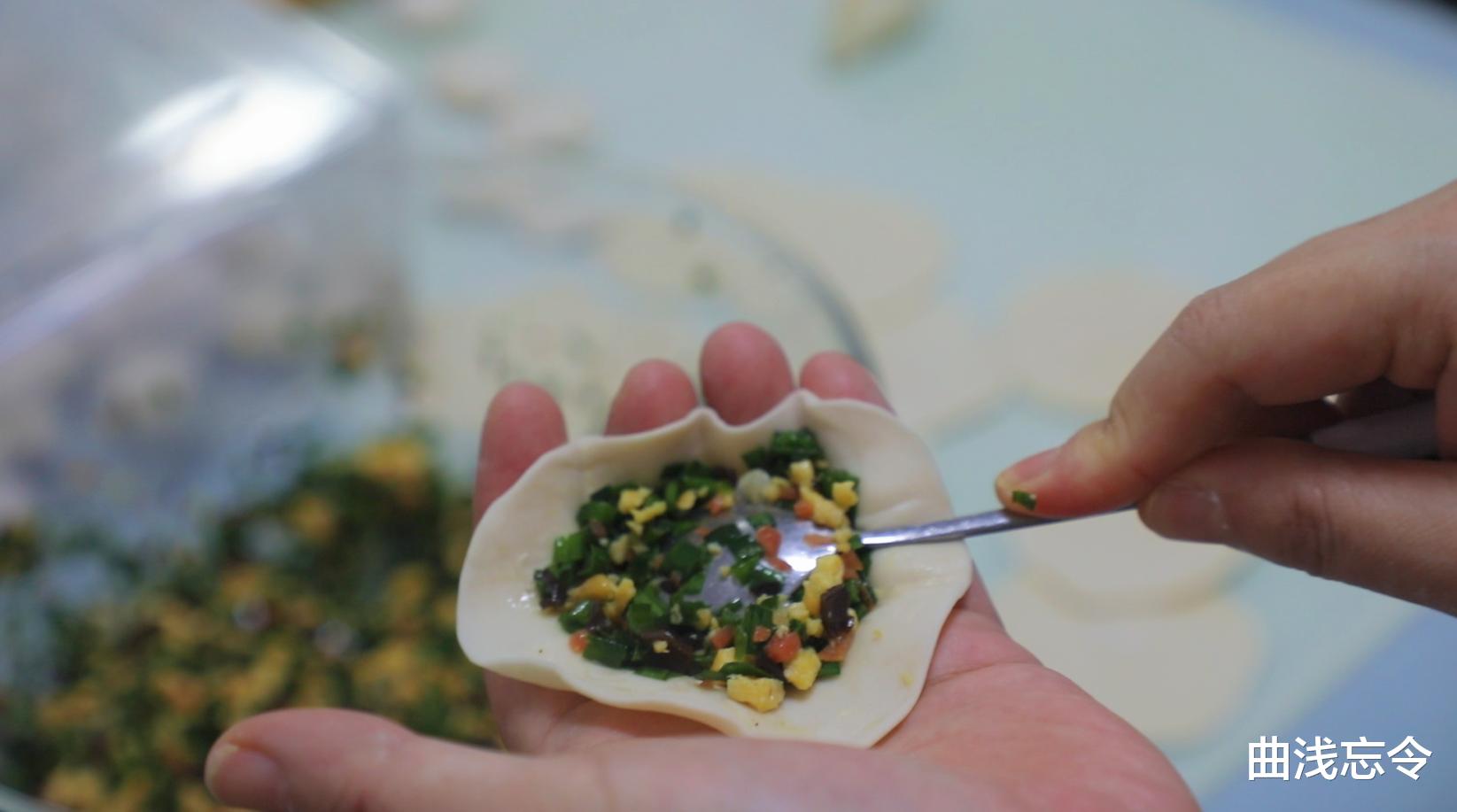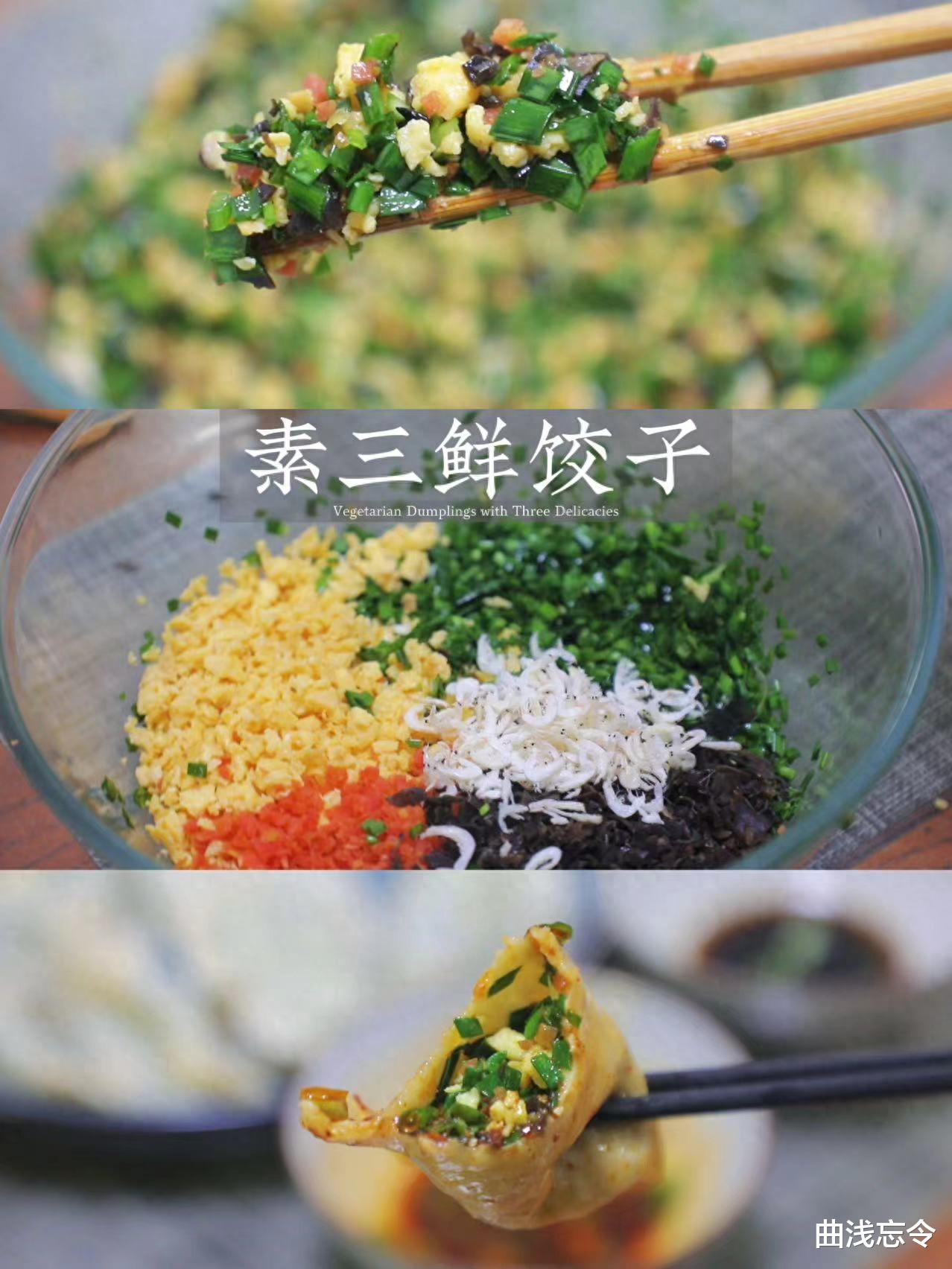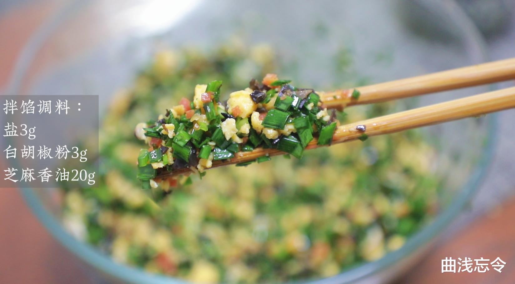 5.馅料食材混合时都要凉透再混合,避免烫着韭菜,所以推荐按照上面流程操作。调味无需多,简单即可。