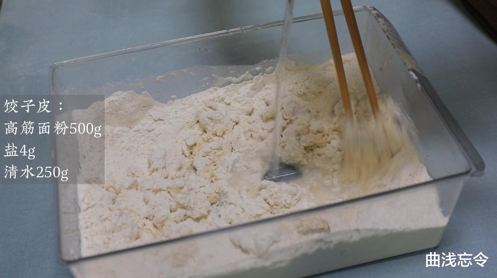 饺子皮:高筋面粉500g、盐4g、清水250g