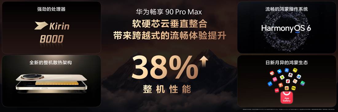 01实力破圈性能新篇 HUAWEI Mate 80 Pro Max 风驰版重构旗舰新体验今天,HUAWEI Mate 80 Pro Max 风驰版正式发布,整机性能相比上一代Mate 70 Pro+平均提升45%,以颠覆性的散热技术、强大的内存技术与可靠的防护体系,再次诠释华为Mate系列旗舰级的探索与突破。其首发搭载华为风驰散热架构,通过仿生羽翼涡扇与超导热弯流翅片构建主动式风冷系统,在重载游戏场景中相较上一代机身温度最高降低2℃;采用业界首创HyperSpace Memory超空间内存技术,后台应用保活率综合保活对比Mate 70 Pro+提升67%,16G的内存获得20G的保活体验;针对主动散热开孔带来的可靠性挑战,通过物理与化学双重防护体系,为用户带来持久耐用的使用保障。此外,HUAWEI Mate 80 Pro Max风驰版搭载第二代红枫原色摄像头、17.5EV超高动态主摄、4x光学微距长焦和超广角摄像头,覆盖多场景拍摄需求,让用户拍照更高效,出片更真实。