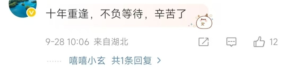 还有人在评论区写下 “十年重逢,不符的等待,辛苦了”。