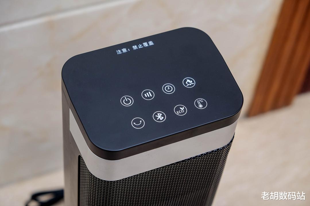 日常控制方面,位于顶部位置,带有多个功能选择,有电源开关、档位、定时、炭火开关、摇头、蓝牙、ECO模式和温度调节,正面还带有一个隐藏显示屏,显示当前的温度,支持遥控器、触屏和语音三种操作方式,使用起来很方便。而且贴心还加入了提手设计,可以方便挪到不同位置使用,考虑很周到。