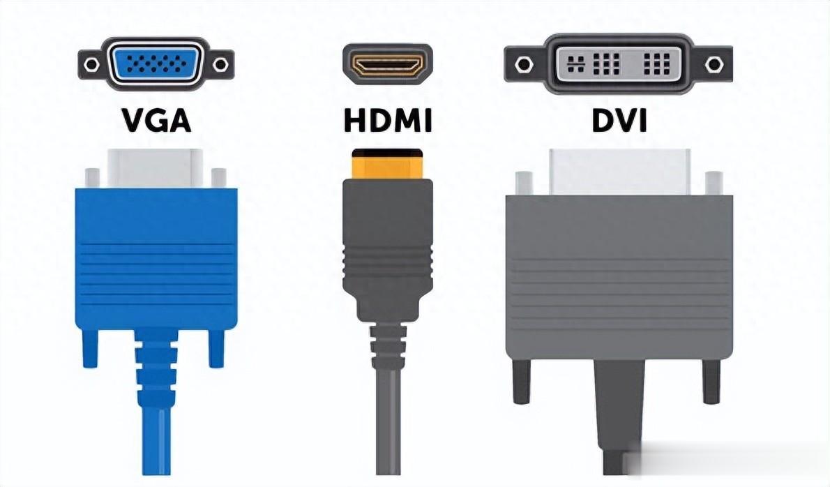 VGA:能用但不清晰(淘汰)DVI:清晰但不全面(过渡)HDMI:全能选手(主流)