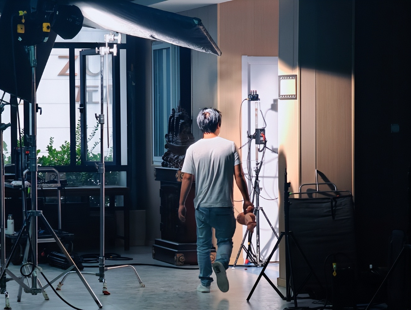 基地里20多个场景连成片,古风庭院的飞檐下挂着灯笼,隔壁就是现代职场的办公桌,再走几步又成了医院病房。