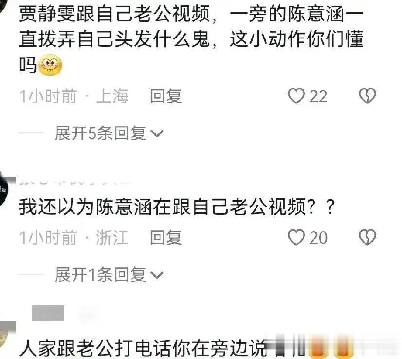 节目中,贾静雯正在和老公修杰楷视频,电话刚接通,一旁的陈意涵就凑了过来,直言:“你很乖哦,这么快就接了。”一时间,氛围格外尴尬,之后,她的行为直接让贾静雯难以绷住。 这是5月13日《浪姐4》中的日常一幕,因为贾静雯和陈意涵是一队的,所以接触也比较密切,当时贾静雯正在和老公通电话,陈意涵就一直过去,似乎她才是人家女朋友。 对话也格外有意思。 刚接通陈意涵就凑到手机前说:“你很乖哦,这么快就接了。” 随后,陈意涵又凑到镜头前说:“你在哪儿?” 还在镜头前不时的撩头发,这让贾静雯有点绷不住了,直接拍了一下陈意涵的手臂说:“当然是在家啊,不然还能在哪儿?” 这时,陈意涵才皱着眉头表示:“我都觉得墙壁颜色变了。” 一时间,网络声音万千,陈意涵更是被骂上热搜,大家都在责备她这个行为毫无边界感。 所谓的边界感,简单的说就是指一个人对自己的需求、言行、想法和情绪负责,不过度卷入他人的生活,同时能够在他人越界时及时表示反对,维护自己的自主性。 而陈意涵这一行为真的有点…… 当然也有人表示网友管的太宽了,人家本来就是好朋友,关系很好的,这种行为没什么。 不知道大家这么看?