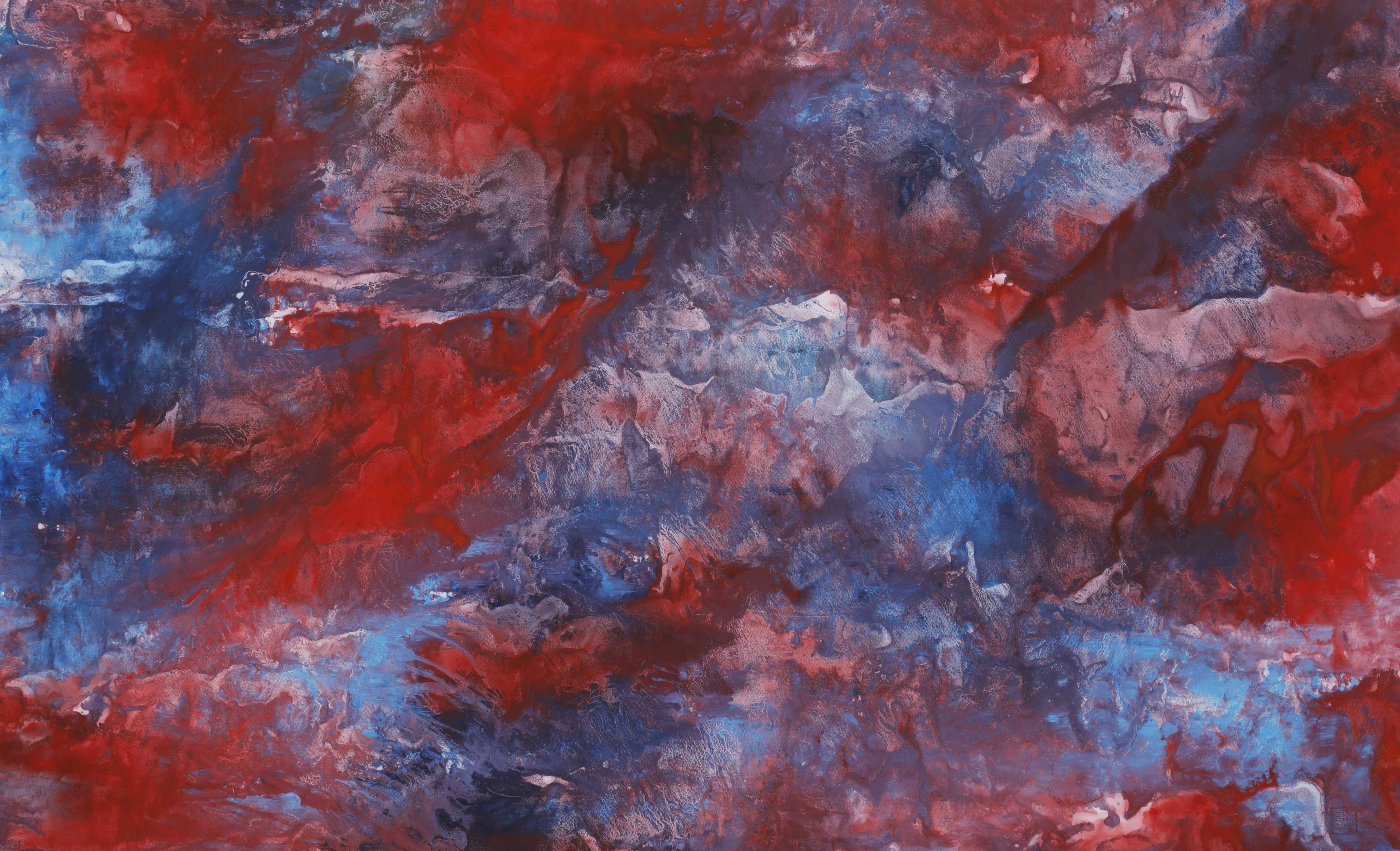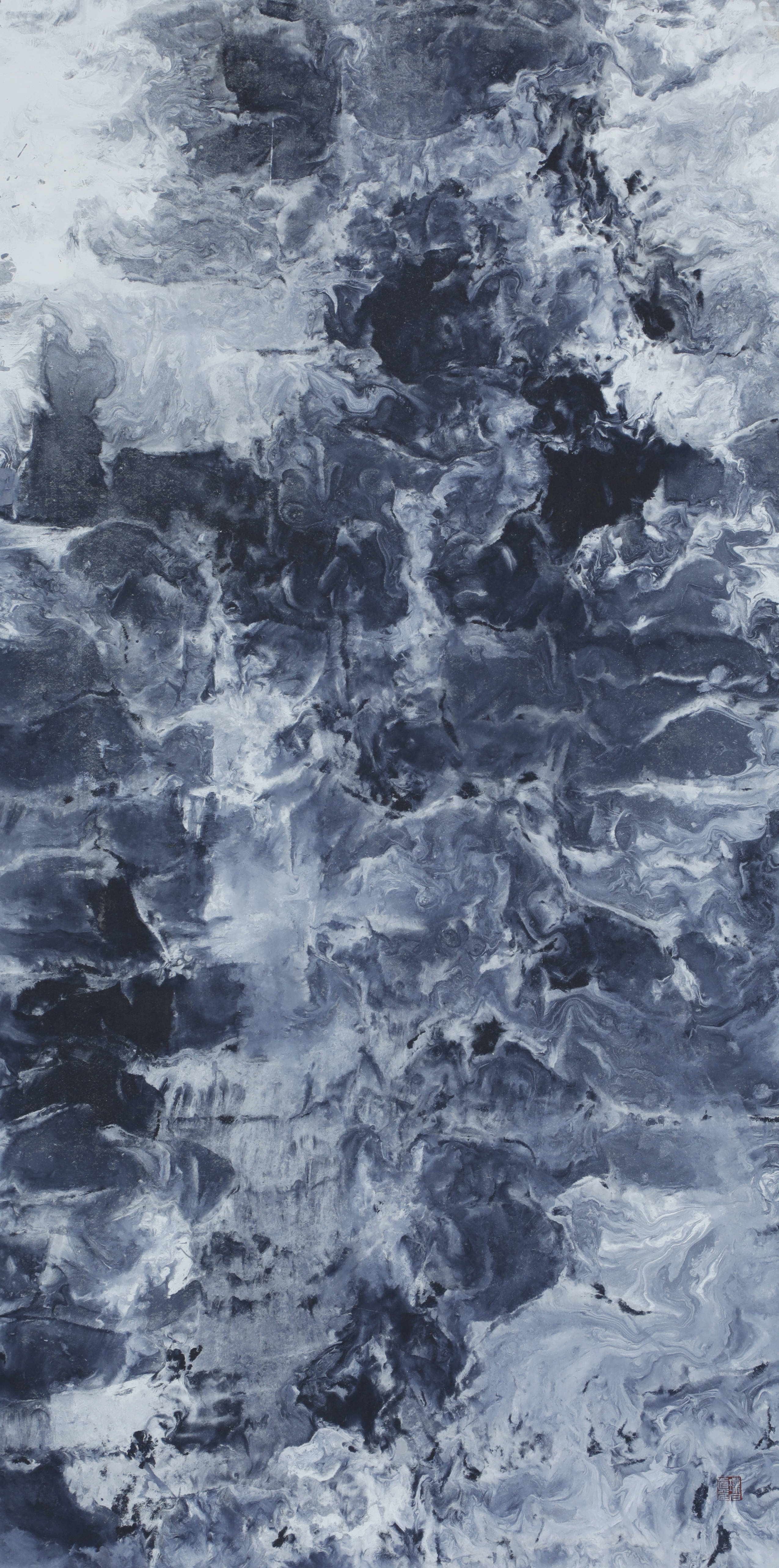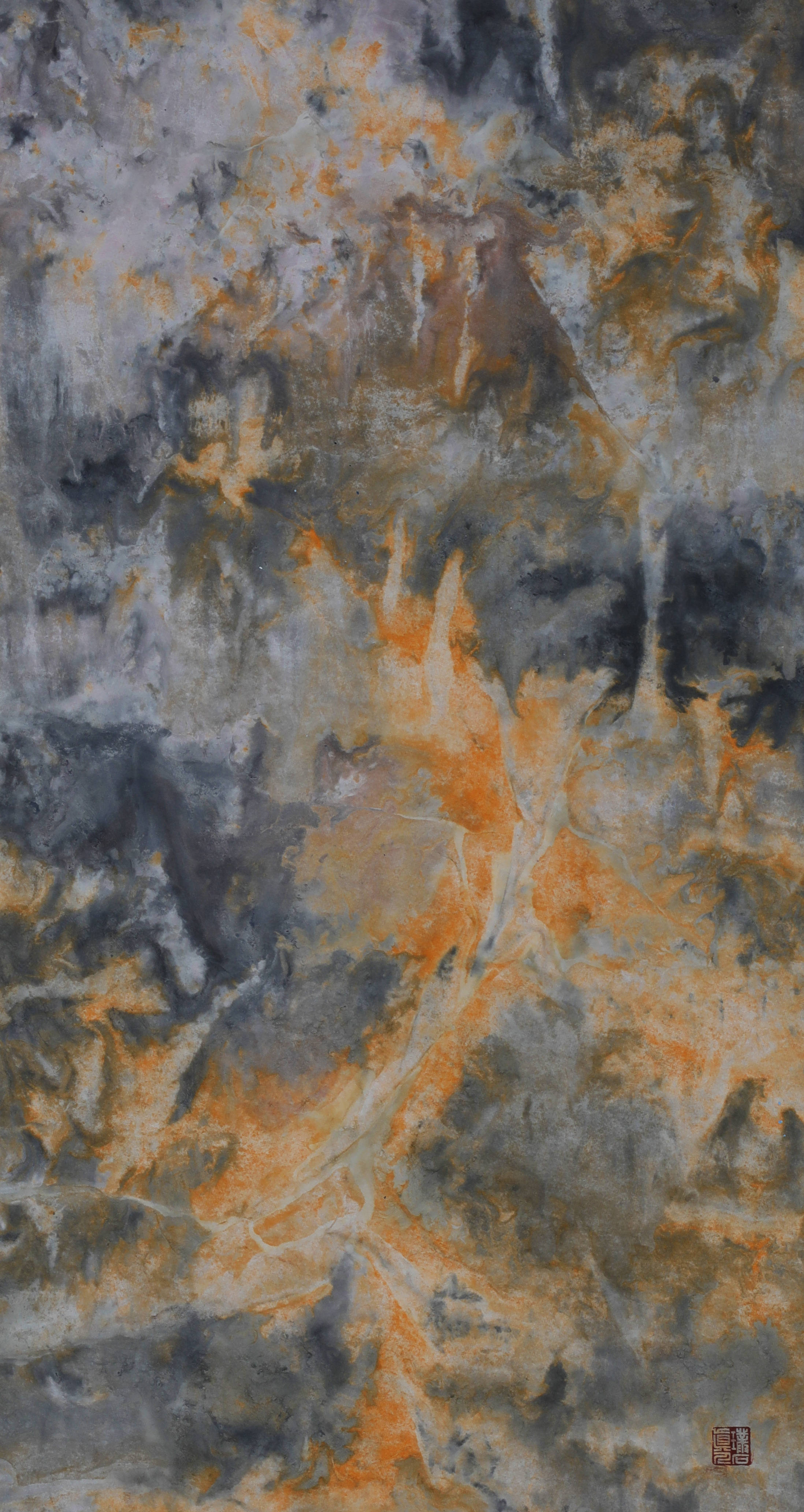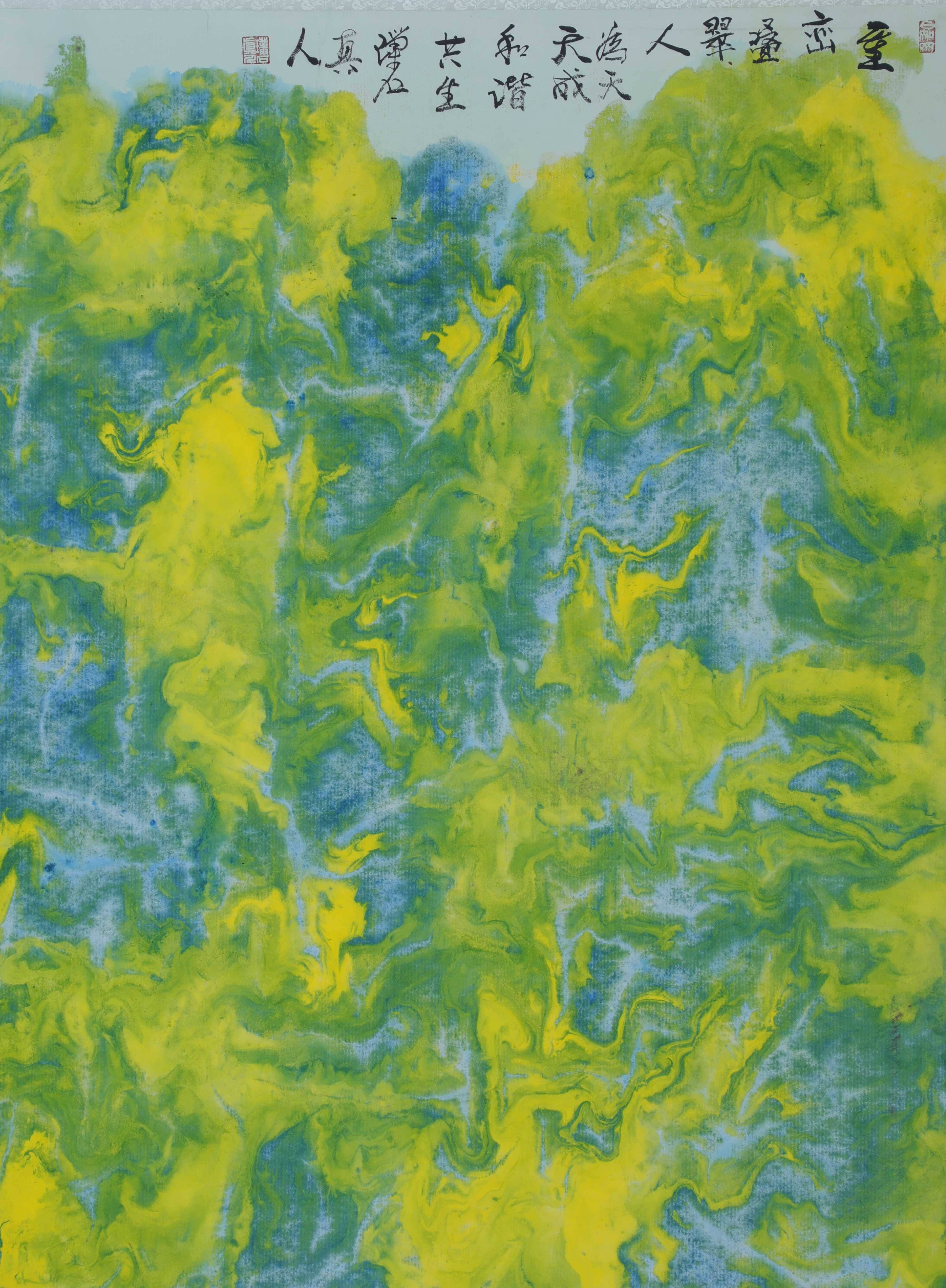 其艺术实践以中国特有的宣纸与国画颜色为基础,结合特殊技法,让水墨色相互融合、碰撞、冲击,在相生相克中产生“化学反应”,爆发出颜色的裂变,最终呈现出奇效。这种创作既蕴含万物万象的自然之美,又兼具必然与偶然交织的变化,奥妙无穷,能实现“天人合一”的境界,这是油画难以达成的——宣纸与国画颜色的结合,本就是我国独有的艺术载体。