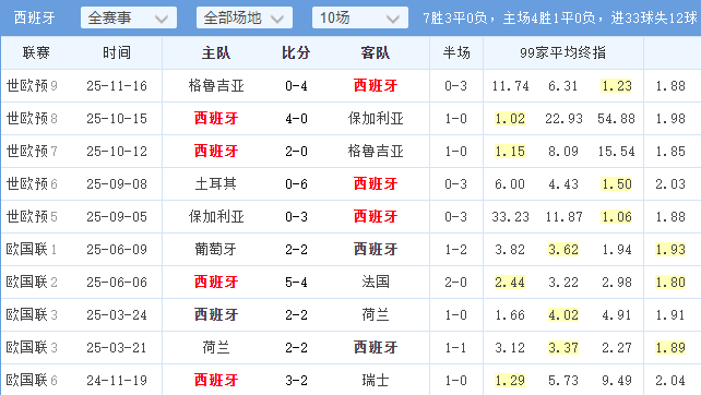 赛事走向预测:综合来看,西班牙的传控体系精准克制土耳其防线转身慢的短板,且主场优势与历史交锋的心理优势显著,即便核心缺阵,整体实力和战术成熟度依旧占优。土耳其虽阵容齐整、反击有威胁,但阵地战能力薄弱,面对西班牙的持续压制,防守端很难长时间保持稳定。