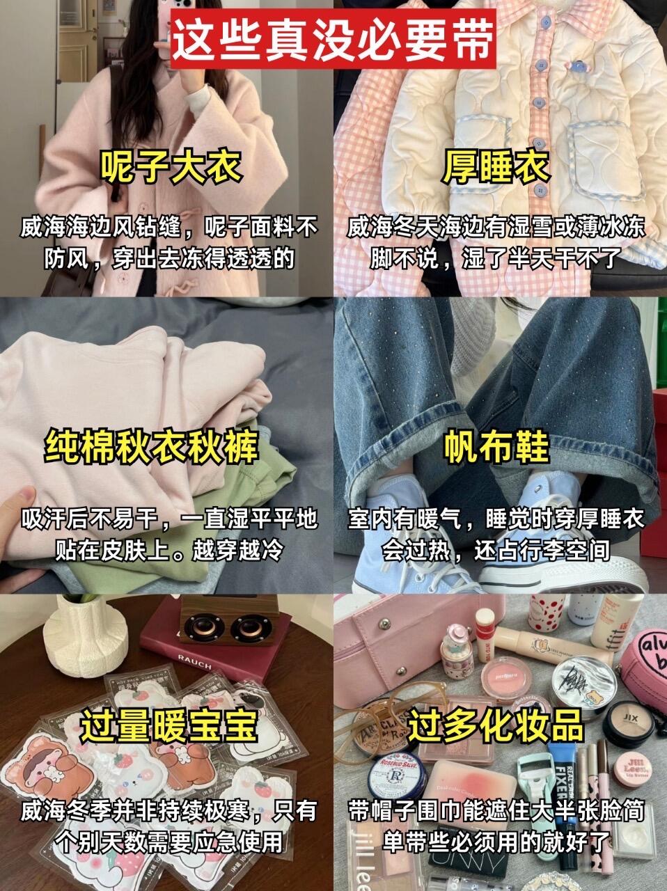 ‼️南方的朋友,出发总担心威海非常寒冷🥶,把很多厚衣服都塞进行李箱🧳里面,结果返程时买了好多东西都装不下,所以我特地整理了这份旅游攻略,帮大家轻装上阵✅