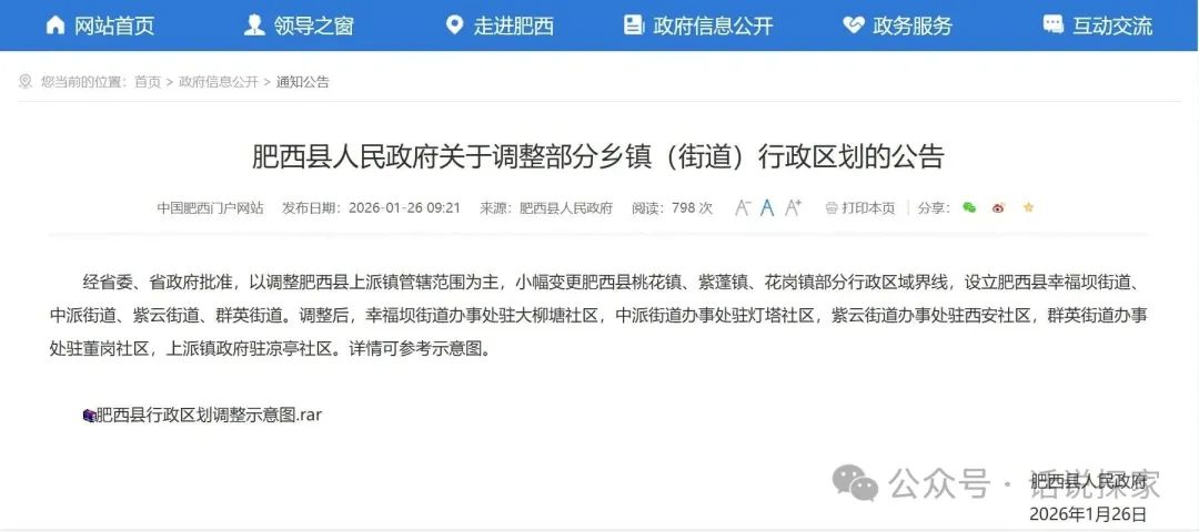 2026年1月26日,合肥市肥西县迎来区划调整。