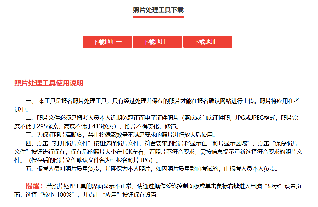 在报名确认网站找到“照片处理工具”下载入口,通常提供多个下载地址,任选其一即可。