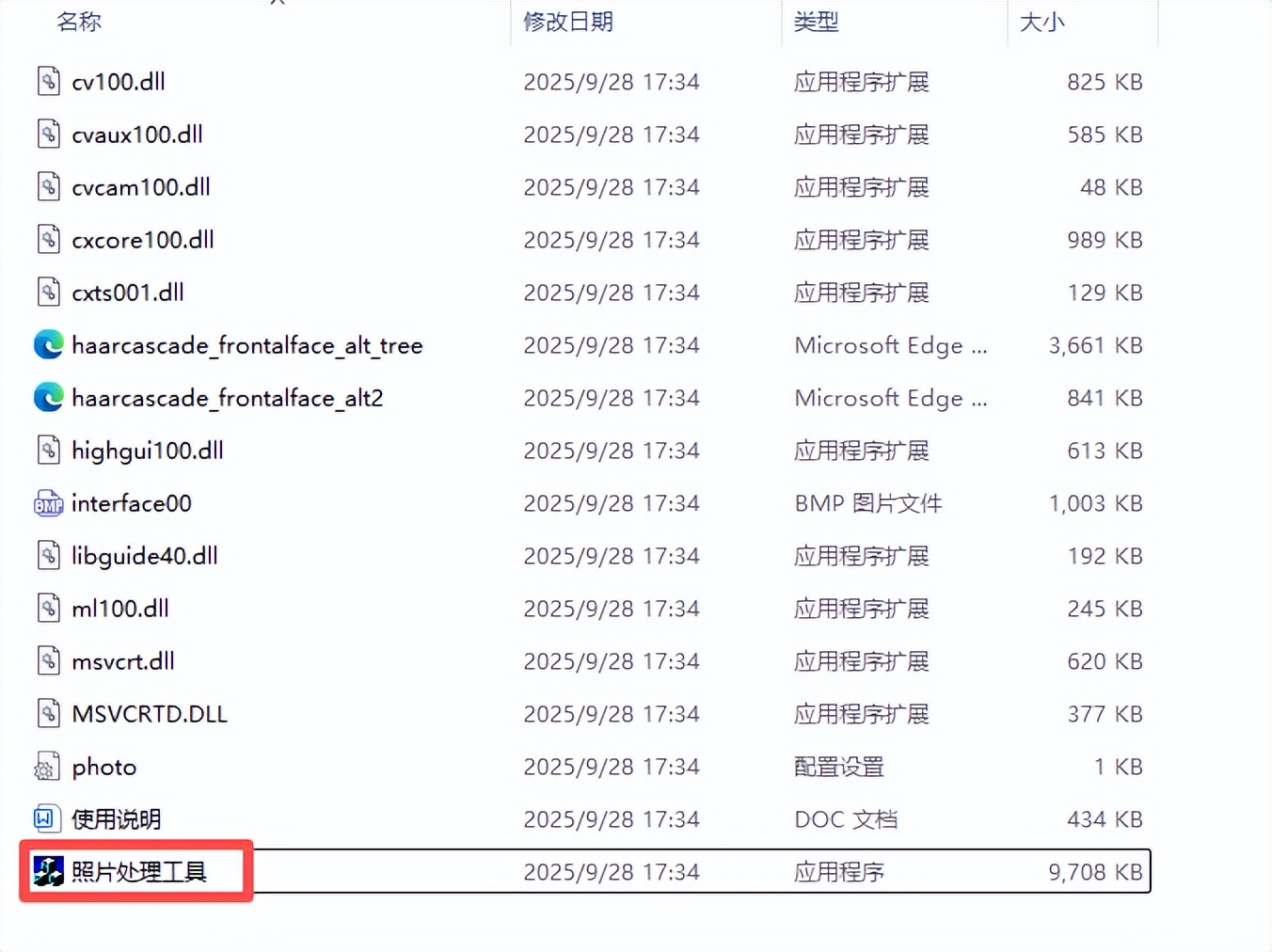 下载后解压,找到 “照片处理工具.exe” 应用程序并打开。