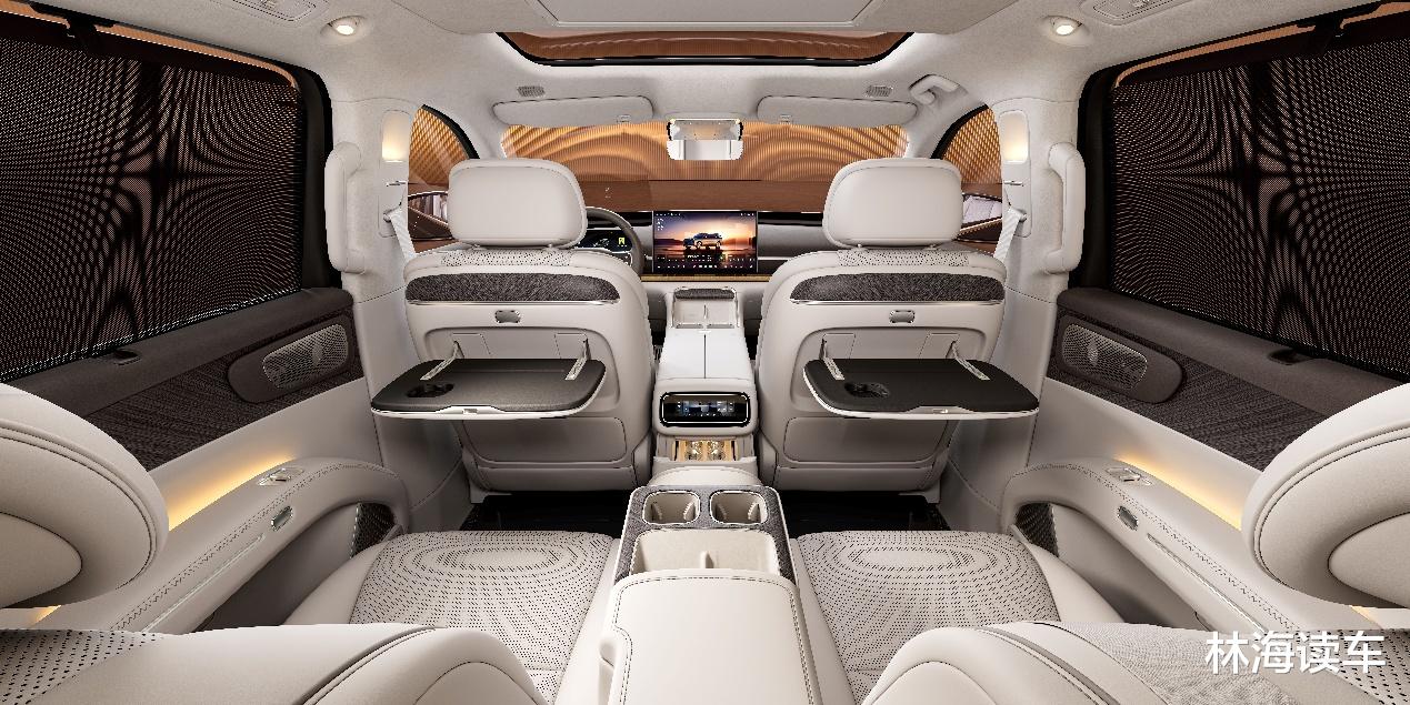 内饰依旧主打简洁的豪华质感,用料上:单片单裁、大师级高定辊边、高定V字绗缝、珍珠打孔、天鹅绒顶棚拉毛、V字拼花、后备厢簇绒,搭配上座椅导轨包覆、椅背软包、PVD镀层扬声器罩面。甚至这台车还在ABC柱上设计了壁灯。单纯从外观和内饰来看,这台长5252mm、轴距3110mm的大车在豪华质感上是落实到位了。