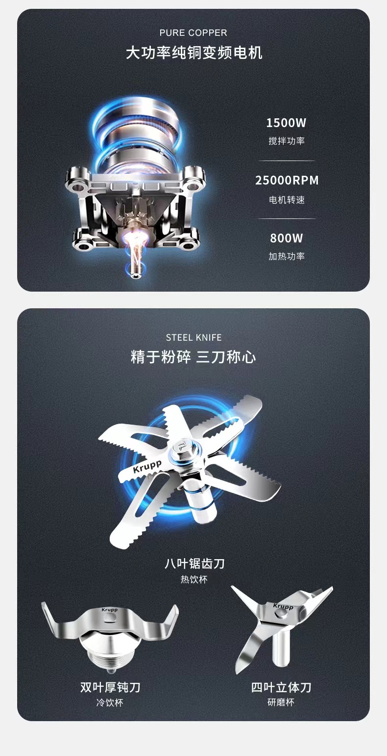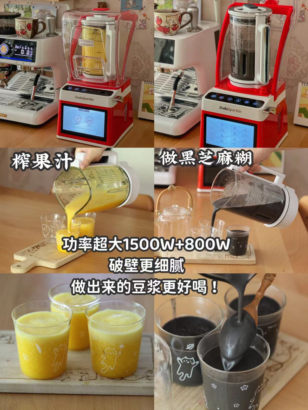 功率超大1500W+800W,破壁更细腻,做出来的豆浆更好喝!