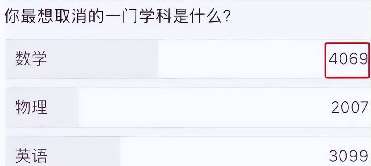 可能这就是为什么数学能够在物理和英语两大“难缠”科目中脱颖而出,成为榜首的原因吧,不过票选归票选,哪个科目都不会真的从大考中去取消,英语不会,其他两个科目更加不会。