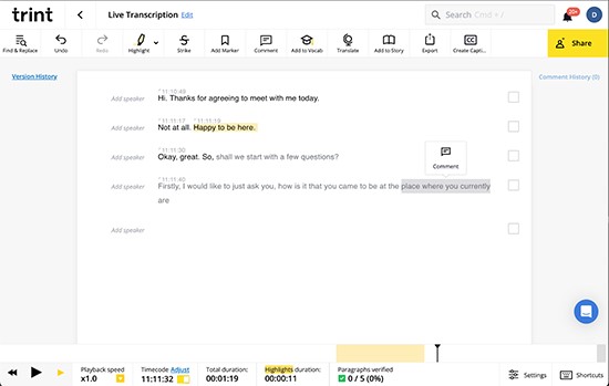 Trint的专业度值得肯定,准确率91%,支持人工校对服务,对于学术论文、专业报告这类对准确率要求极高的场景很友好。1小时音频识别9分钟,速度中等,导出的文本自带排版,不用二次整理。