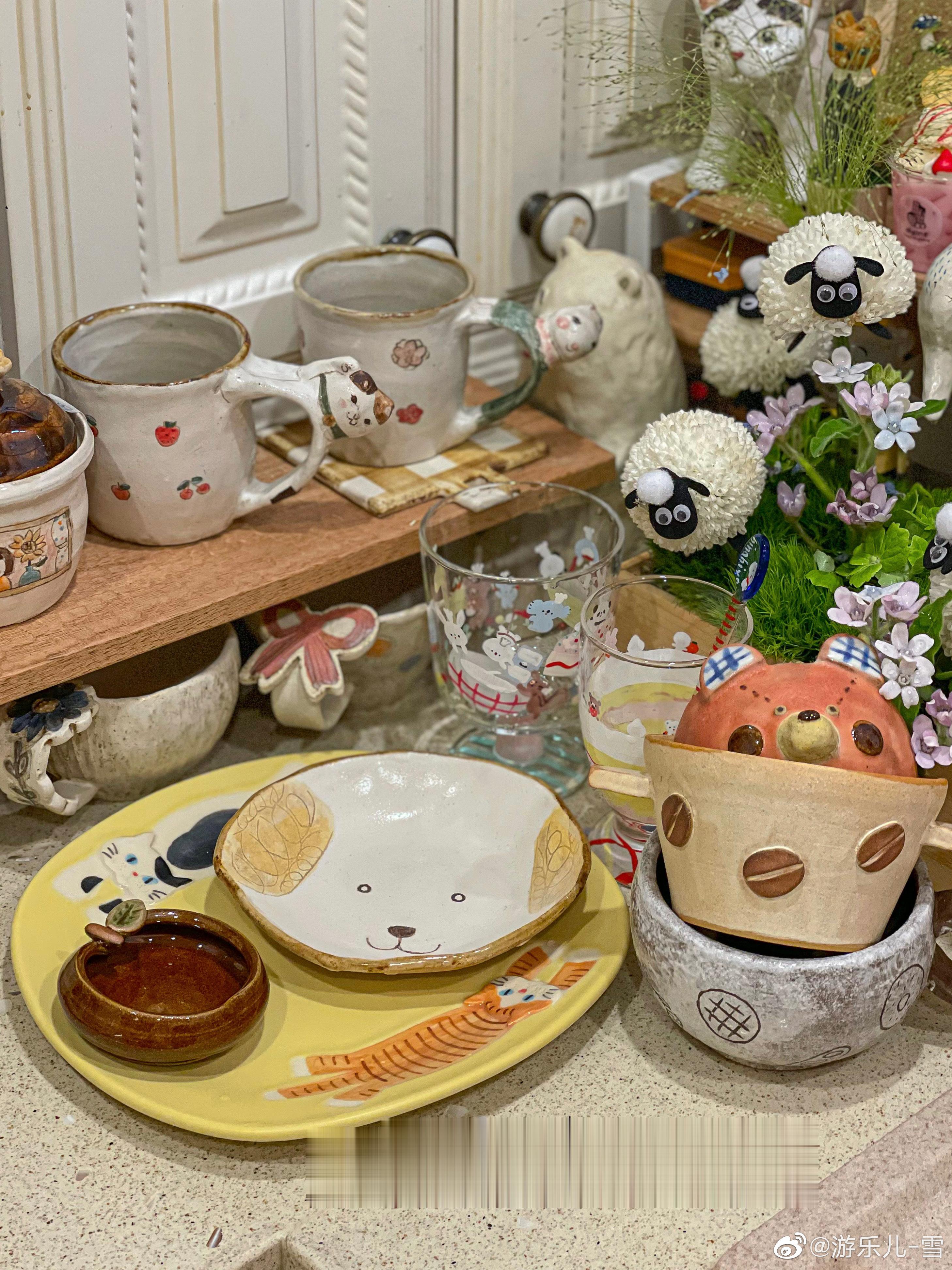 今日份图片治愈[抱一抱]1.喜欢看即溶咖啡粉融化的样子2.可爱的餐具合集+熊猫时
