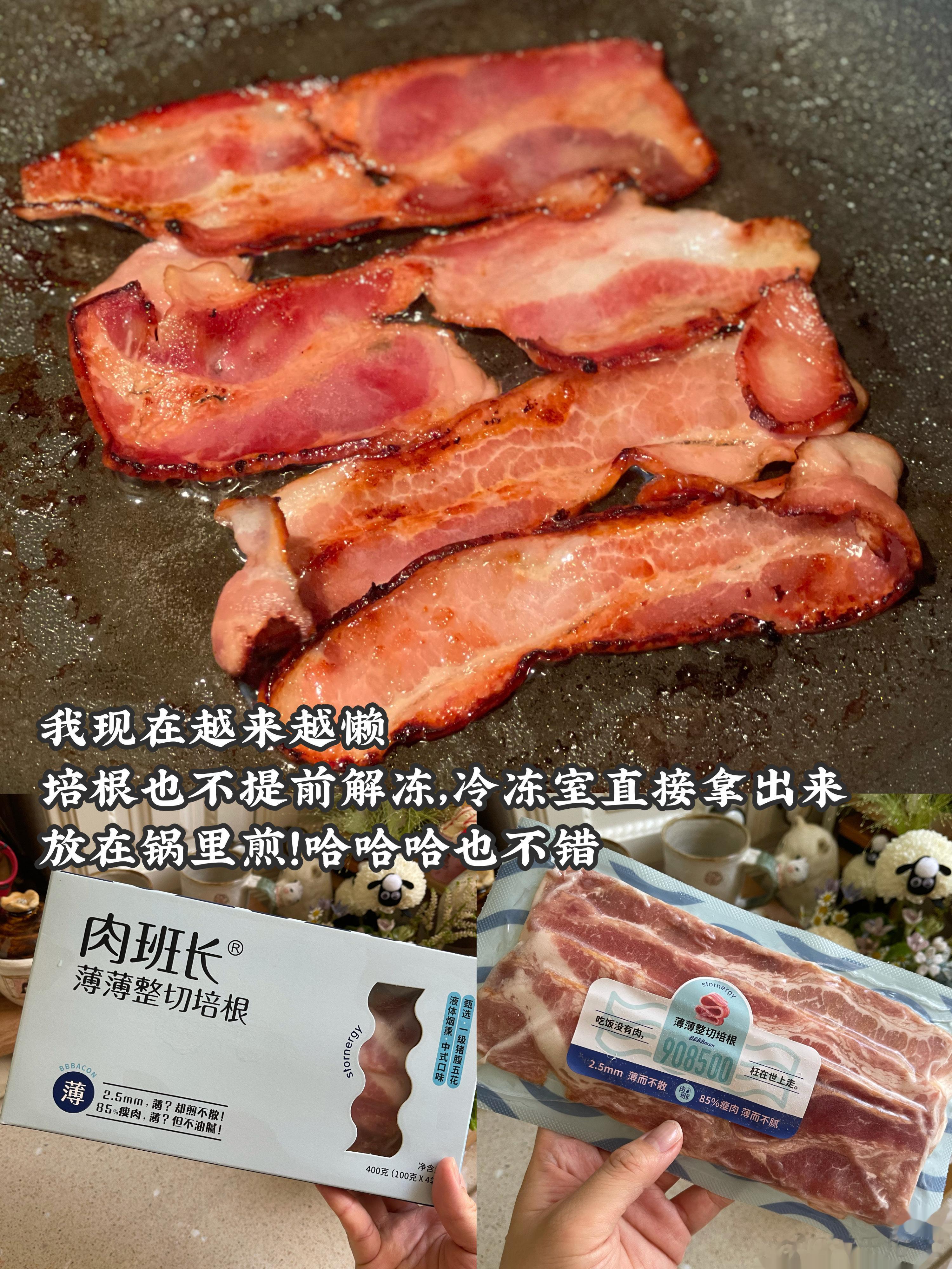 今天想吃培根🥓,冷冻室直接拿出来煎,原来也可以呀,夹着贝果吼吼吃。
