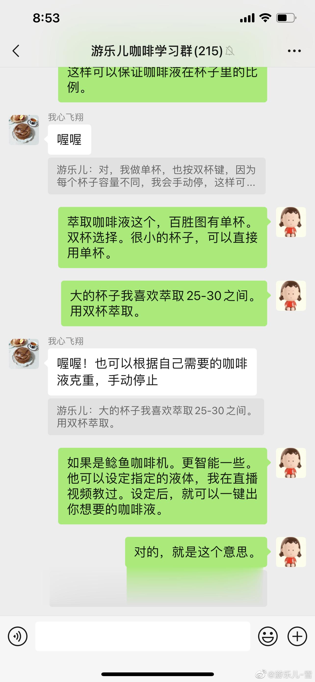 1.早上一杯香浓的咖啡,跟群里姐妹一起聊咖啡机的用法(想加入的姐妹,加我,我拉你们youleer24)。