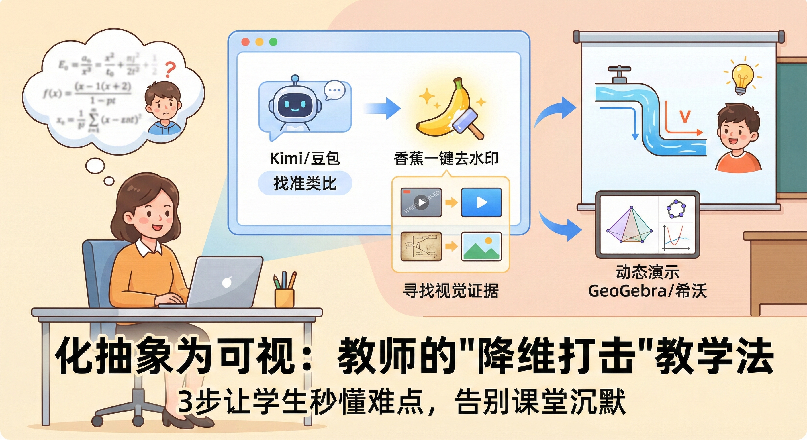 步骤核心任务推荐工具与功能Step 1生成通俗类比Kimi / 豆包:提示词“用生活案例解释[概念]”Step 2获取高清视频香蕉一键去水印:短视频链接解析 -> MP4 原片Step 3优化静态图示香蕉一键去水印:老旧图片 -> AI 智能修复教学就是搭建梯子,梯子搭得好,学生才能爬得高。这套方法能帮你把“知识的高墙”变成“可视的台阶”。如果你觉得这招能解决你课堂上的尴尬沉默,麻烦点个赞或转发给你的教研组,让我们一起把课上得更通透。