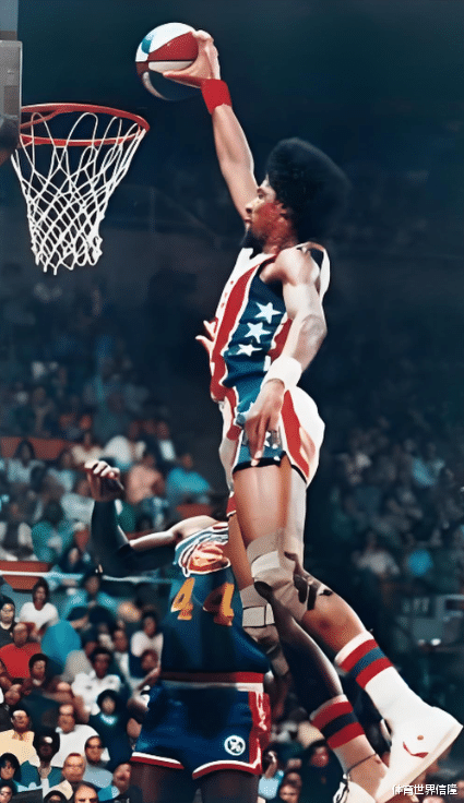 4、朱利叶斯-欧文J博士是现代扣篮的先驱,实战中频繁上演罚球线起跳、背后换手扣篮,飘逸的空中姿态影响了一代扣将。