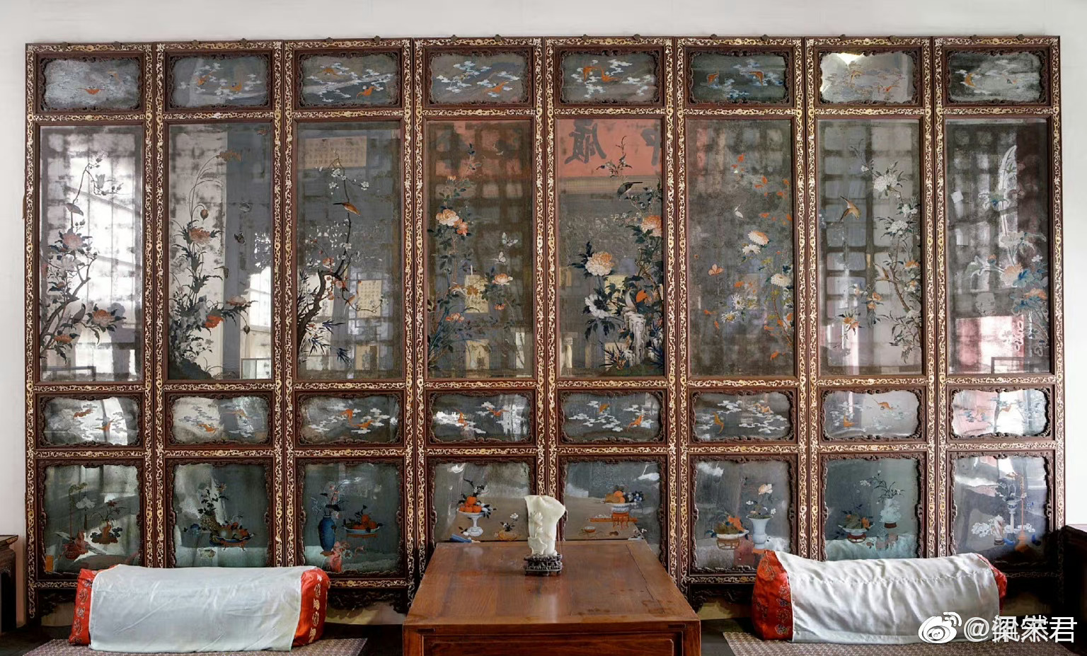 故宫体顺堂有一架八扇玻璃炕屏可供参考。