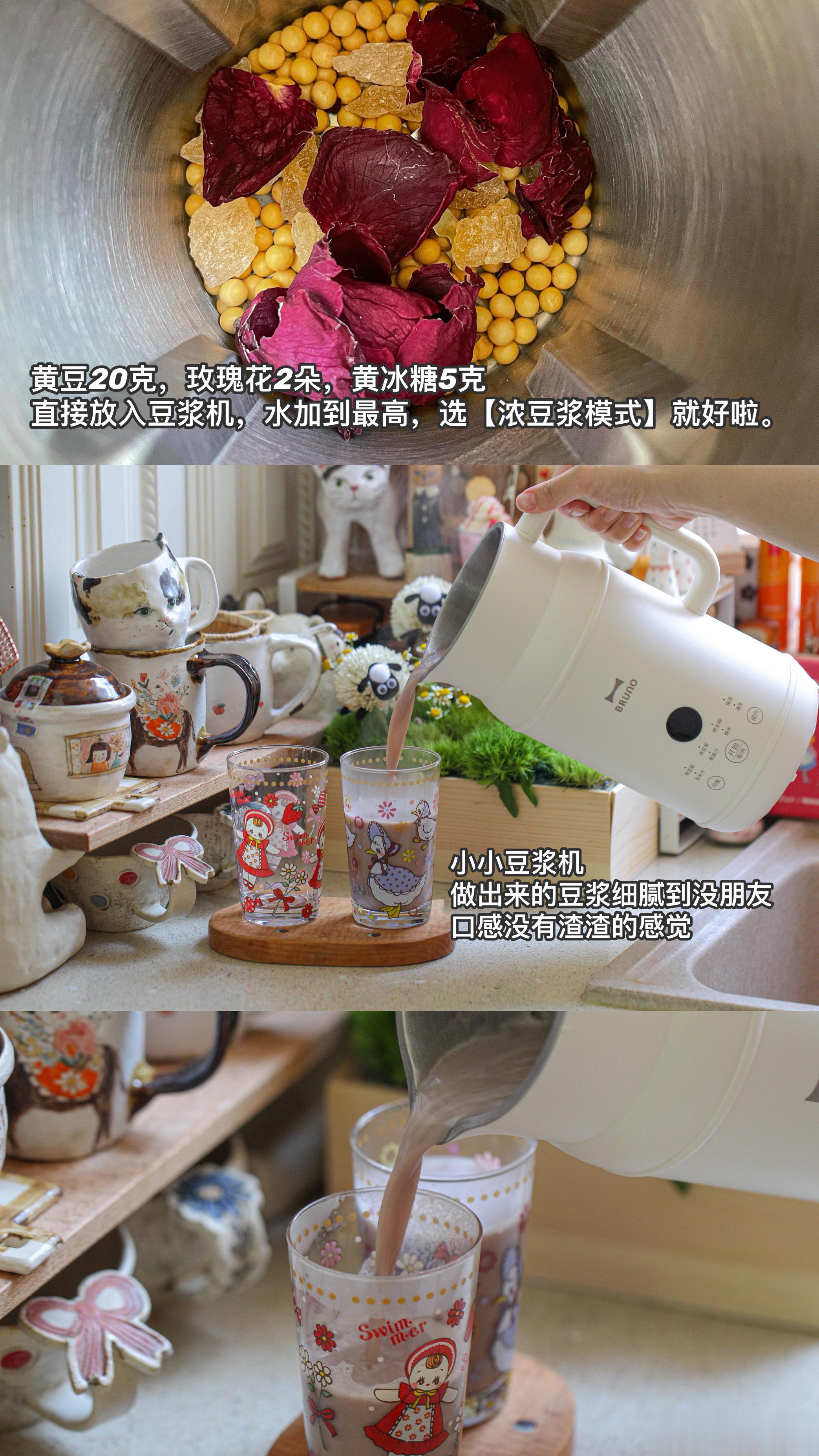 [送花花]给乔乔喝玫瑰豆浆,又香又甜,方子分享给大家。