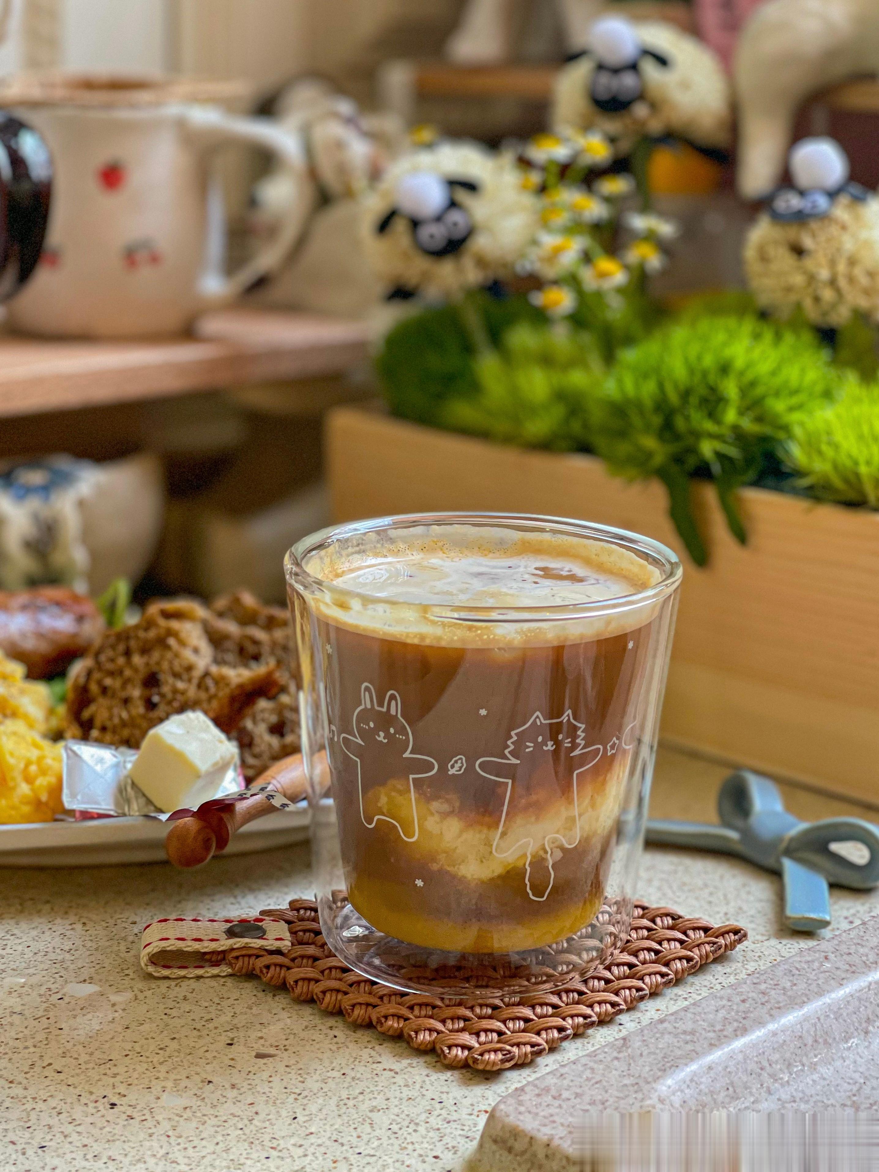 今天吃谷物欧包+美式炒蛋+肉班长的香肠+kiri奶酪+芒果生椰拿铁