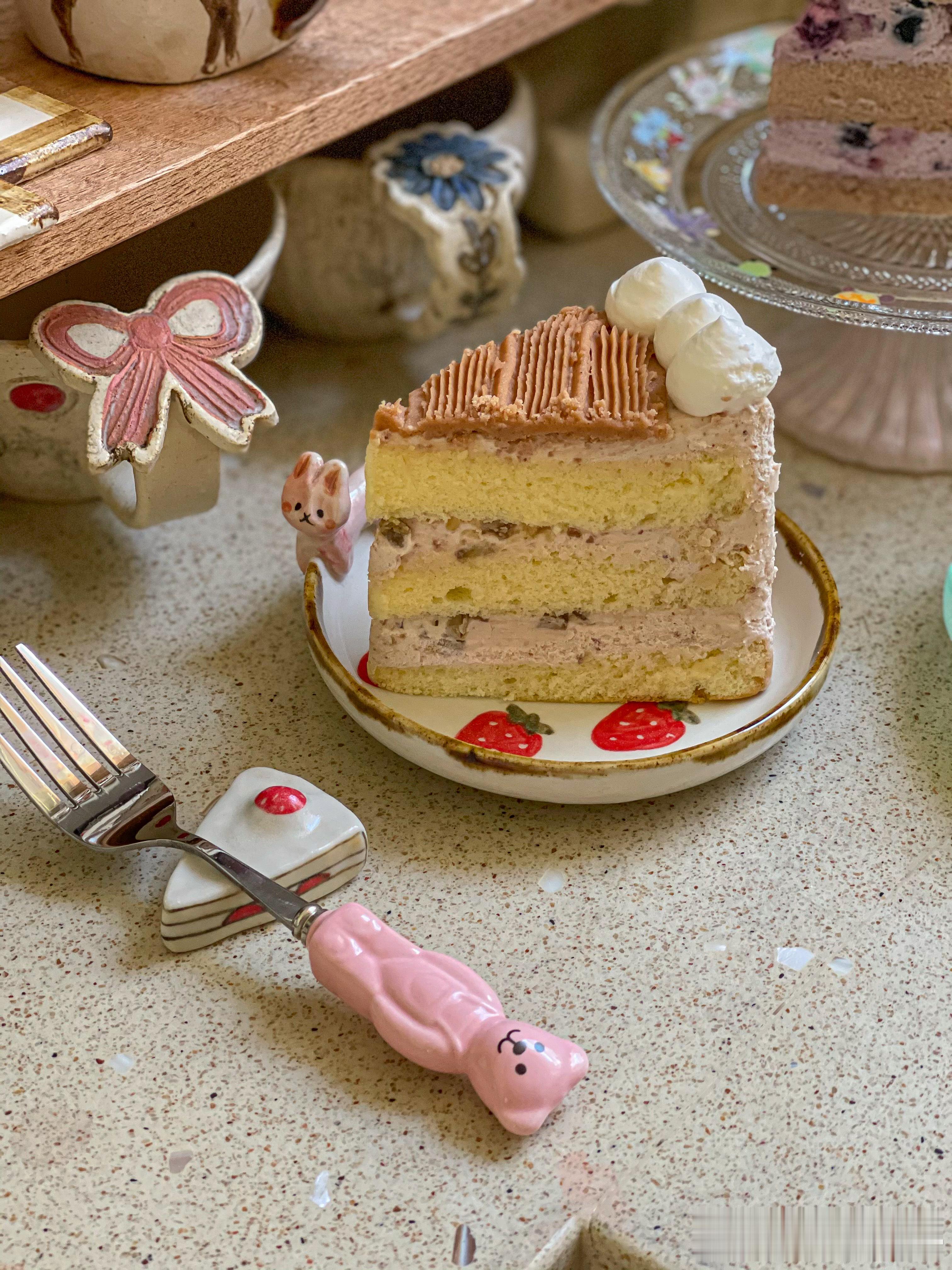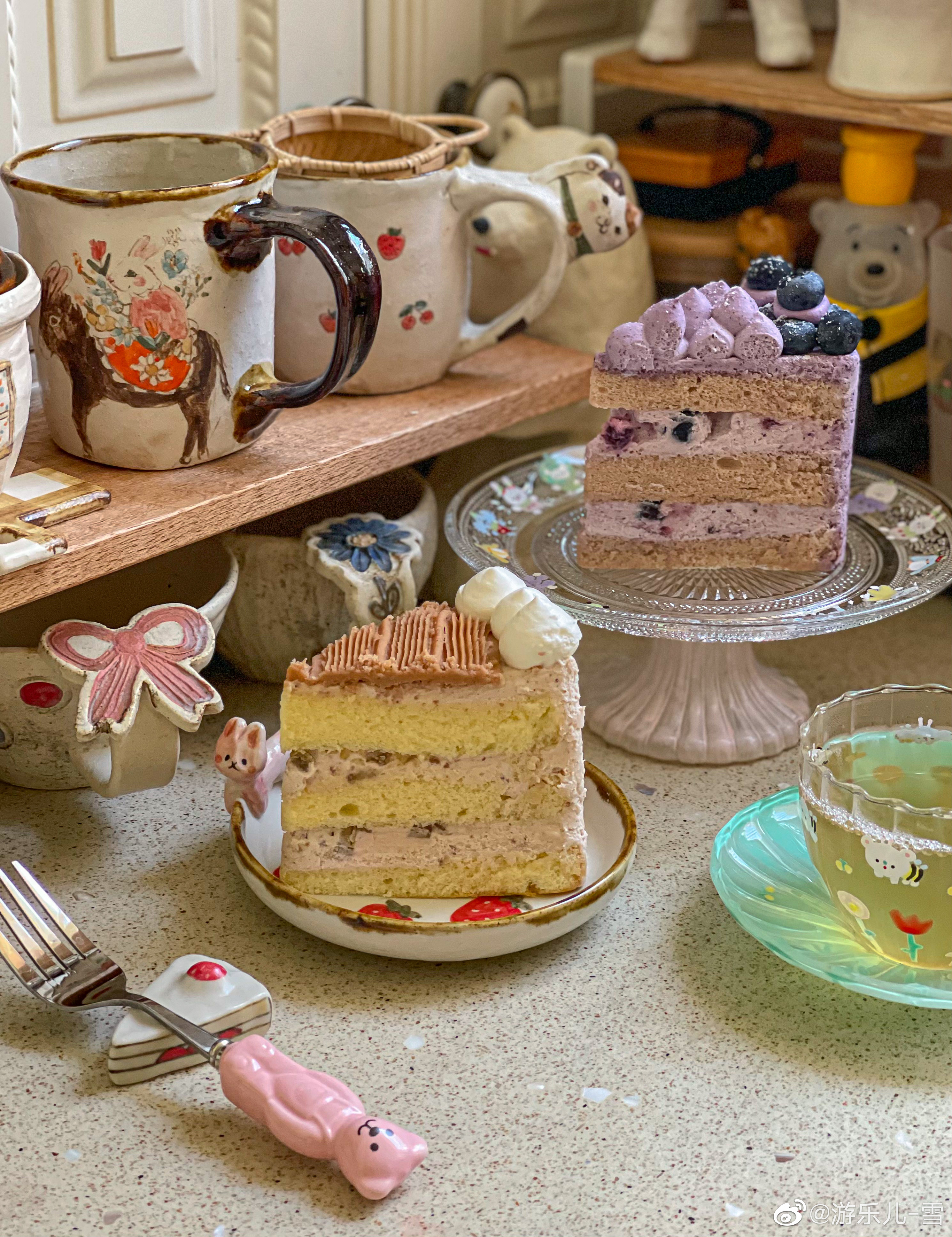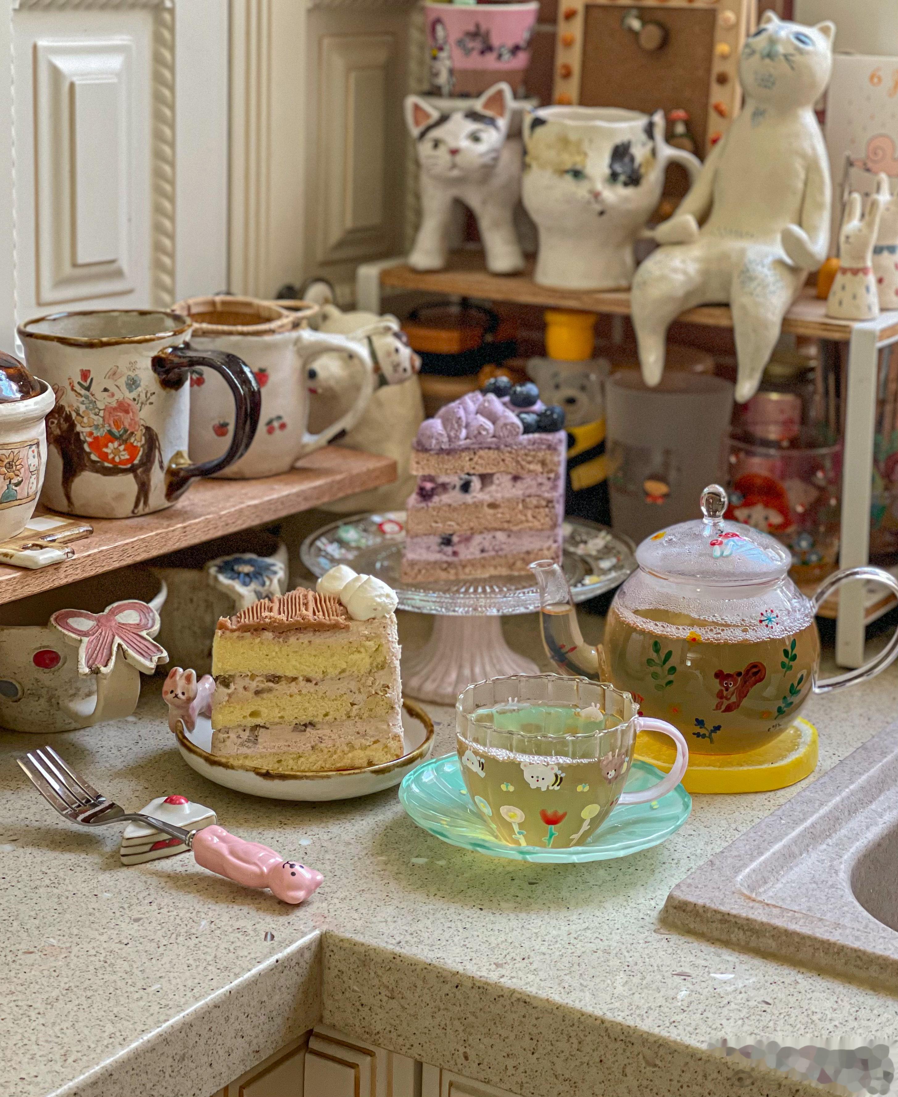 下午茶也吃完啦:四神汤陈皮茶+栗子蛋糕+蓝莓蛋糕[微风][微风][微风][送花花]