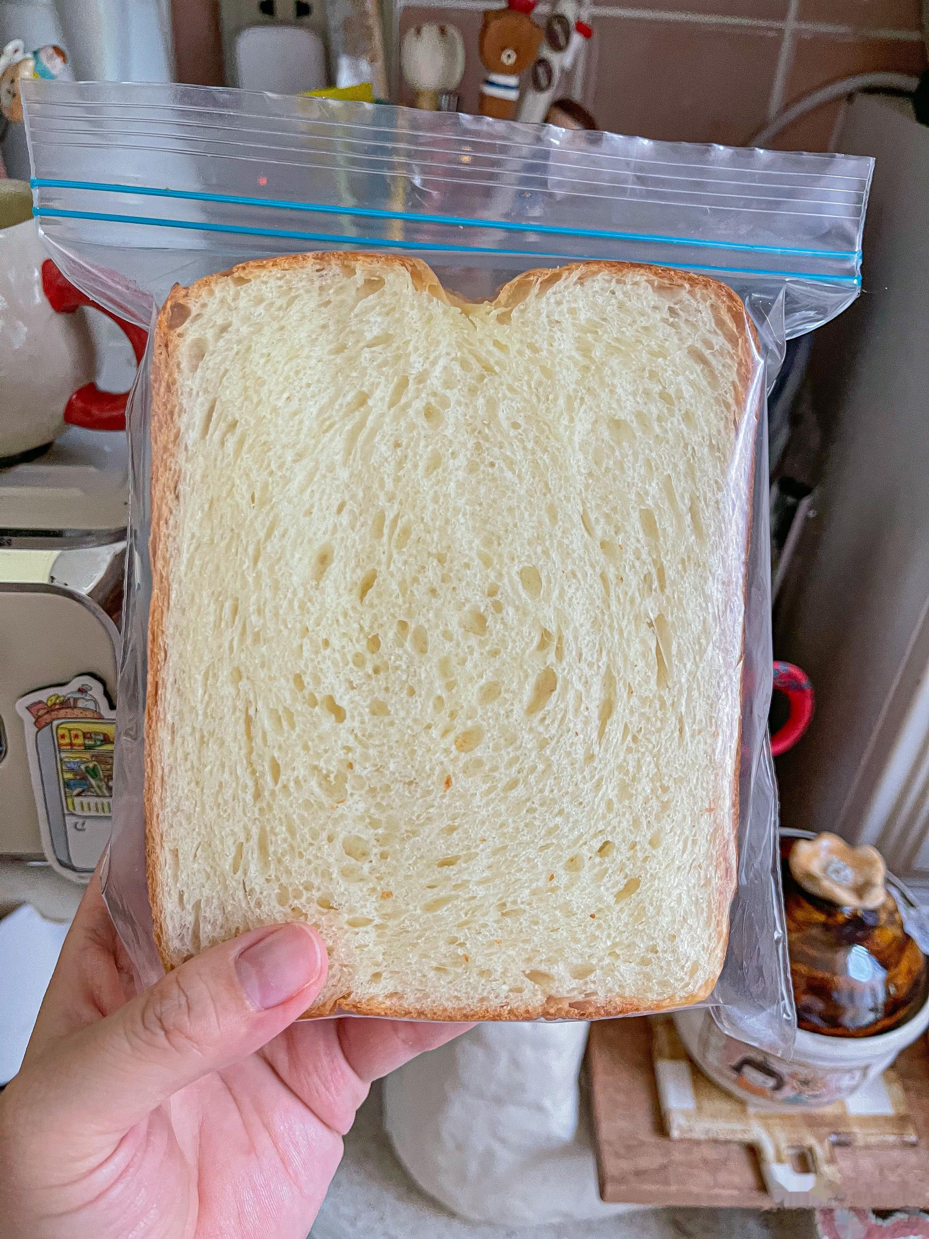 很香很软,越嚼越香[哈哈]。下次烘烤颜色选浅,应该会更软更漂亮。切片后密封袋装起来,明天早餐有啦!自己做面包成本低,没有添加剂更健康。