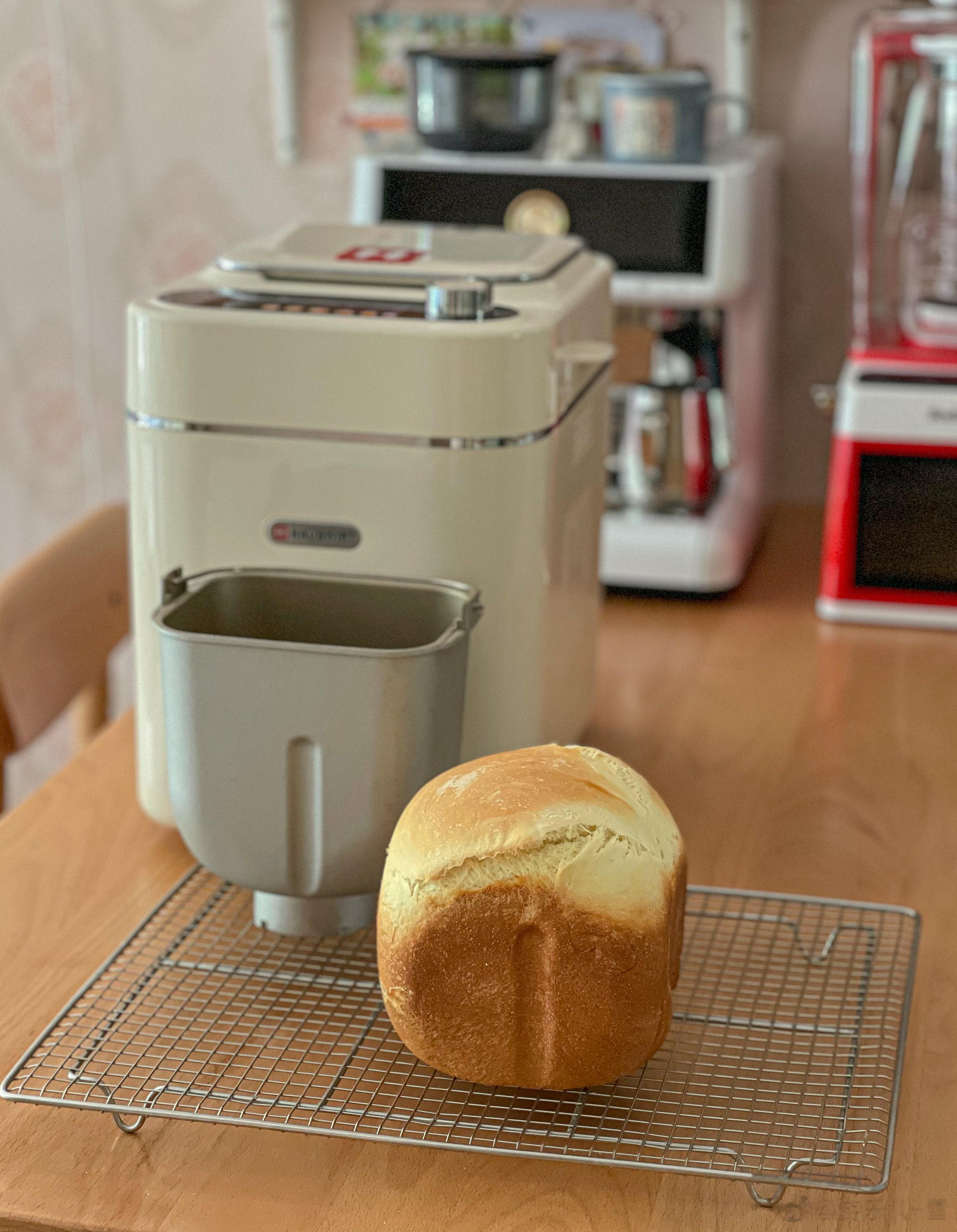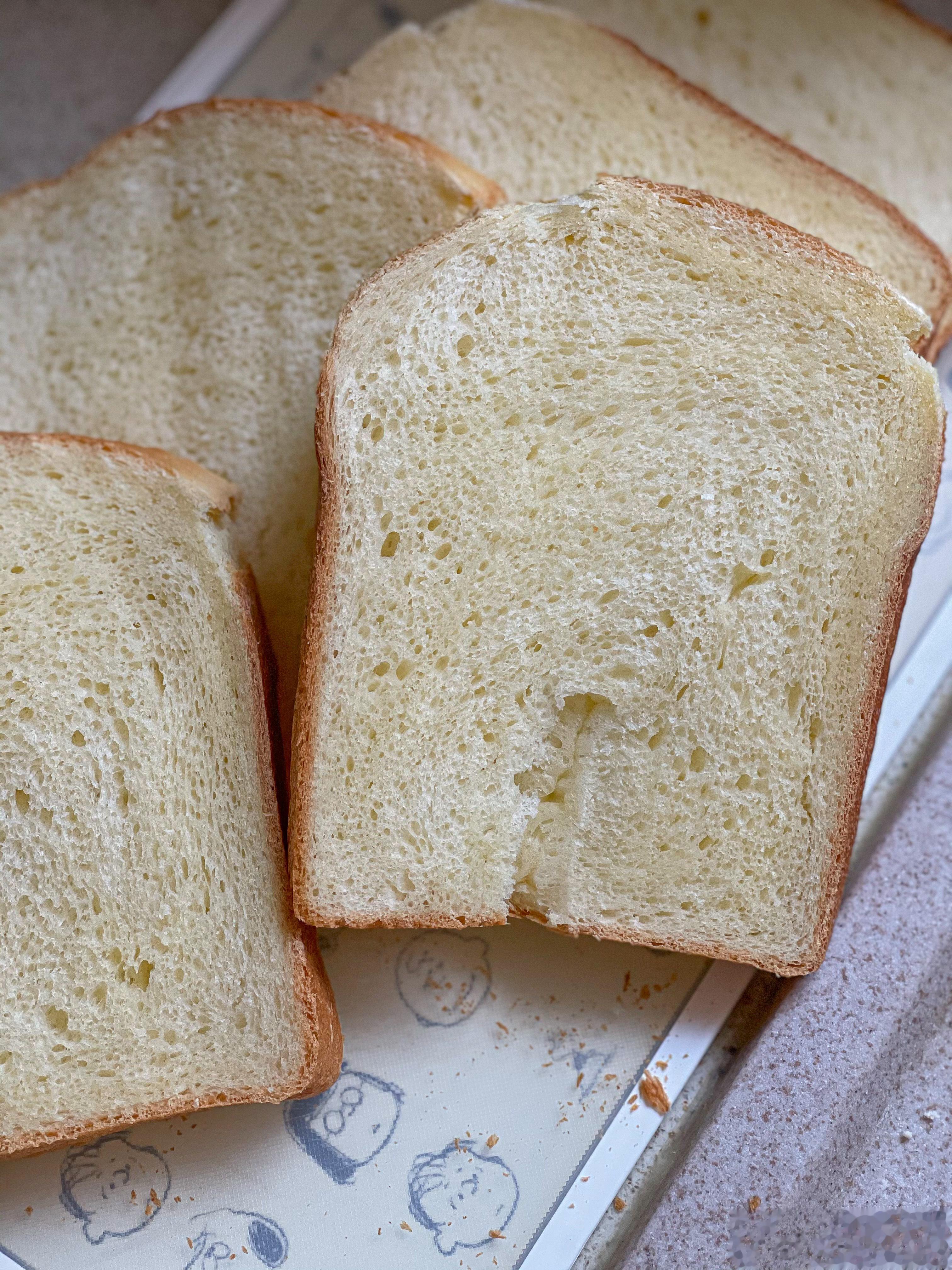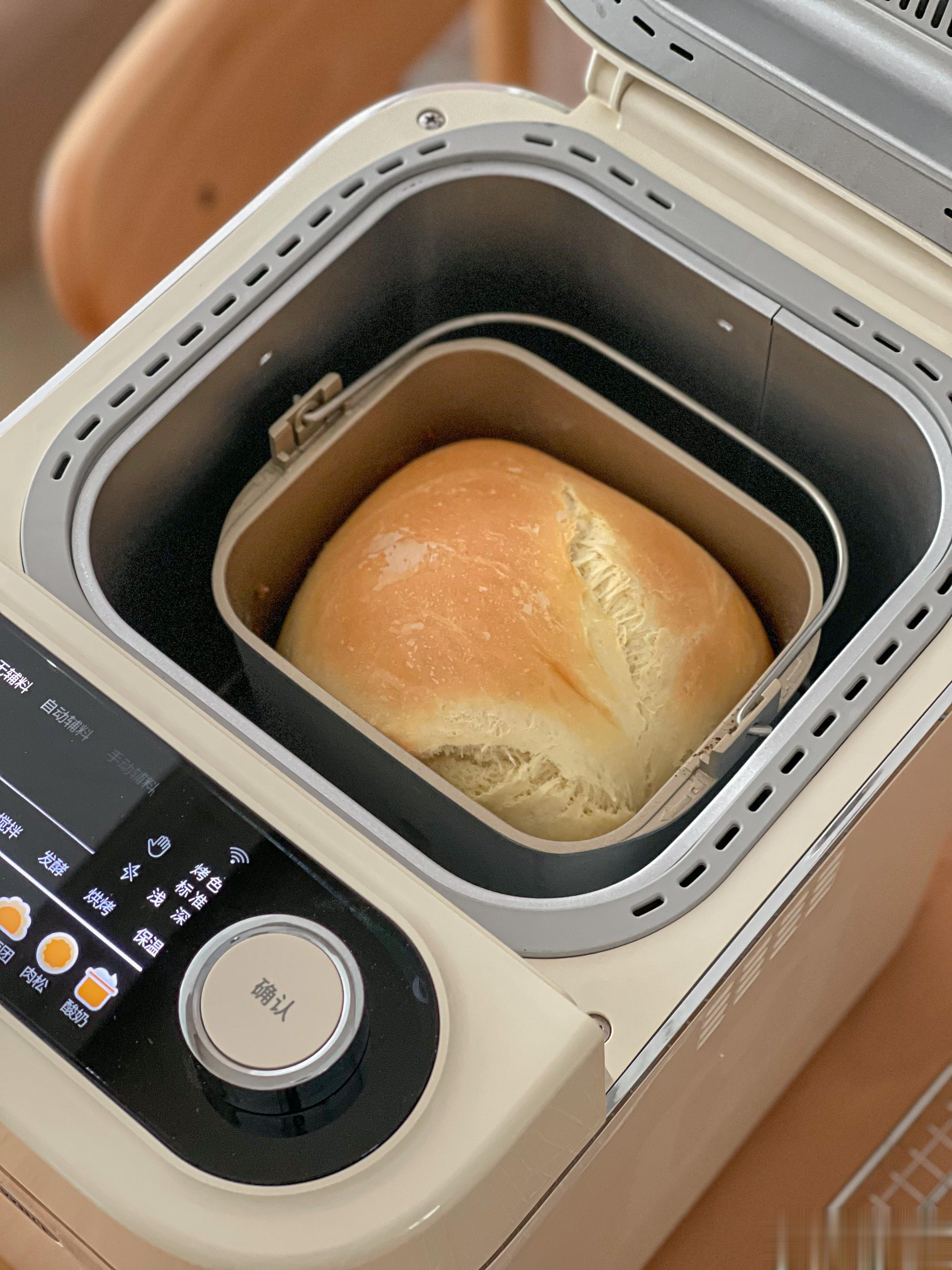 这个吐司我只负责投料,全程没有干预,全部交给面包机。烘烤颜色选浅色,真的很赞[good]。