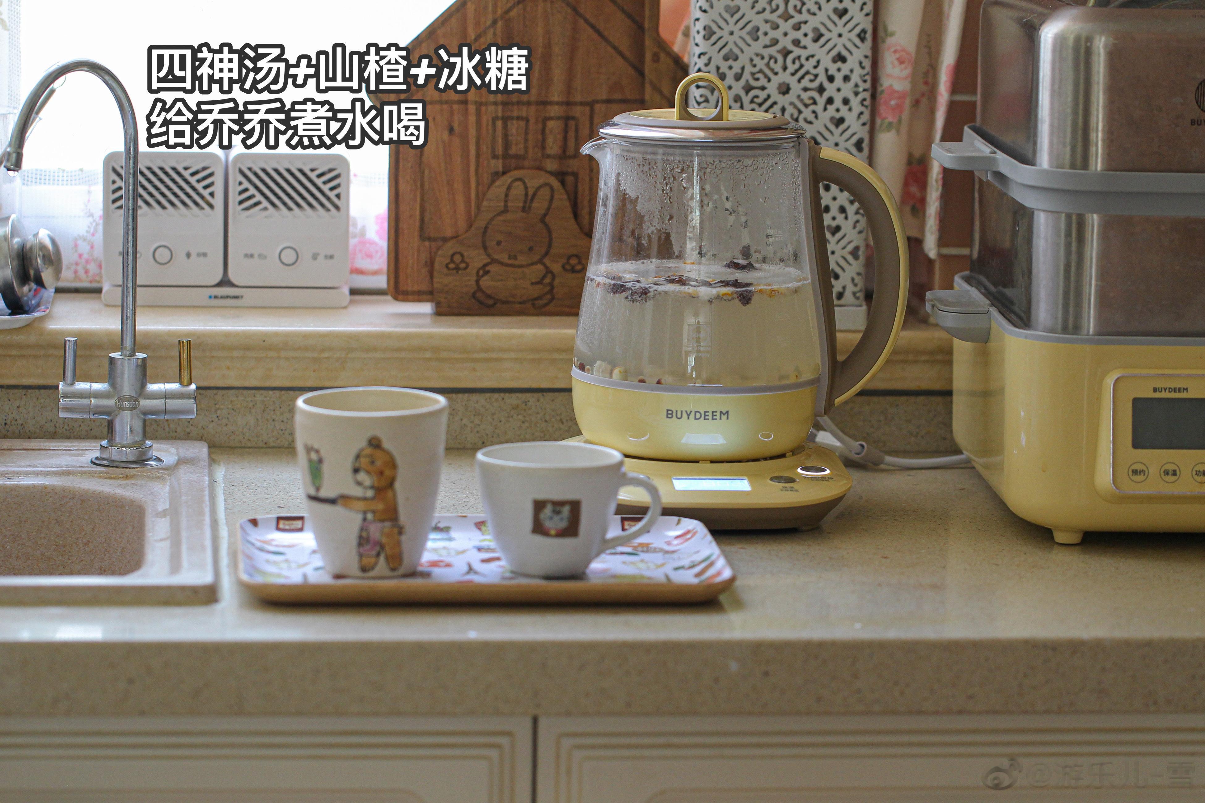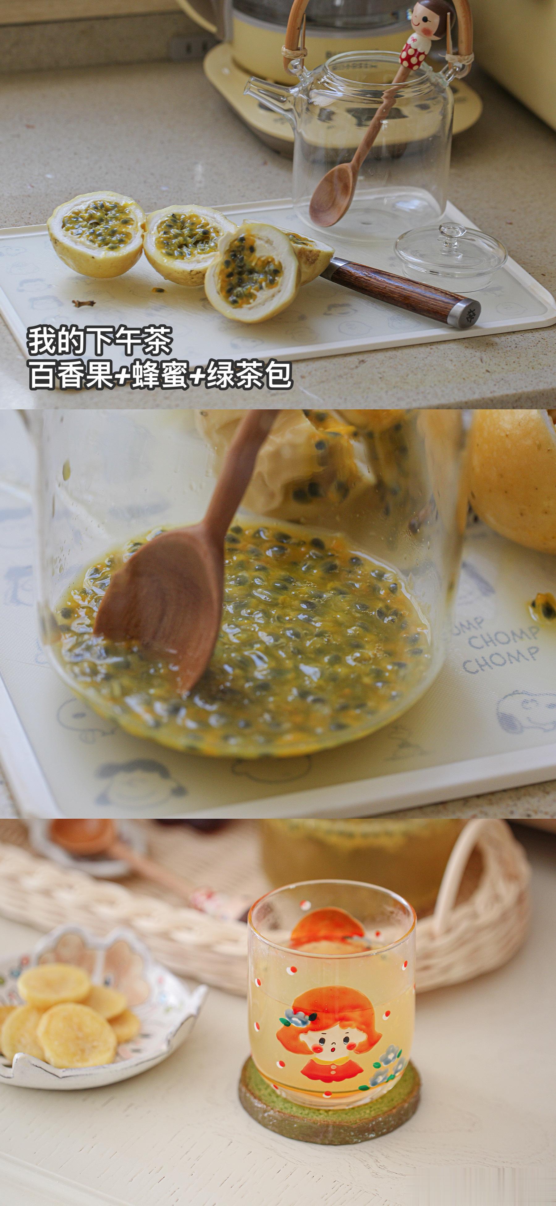 3.我喝百香果蜂蜜水,给孩子煮了四神汤+山楂。