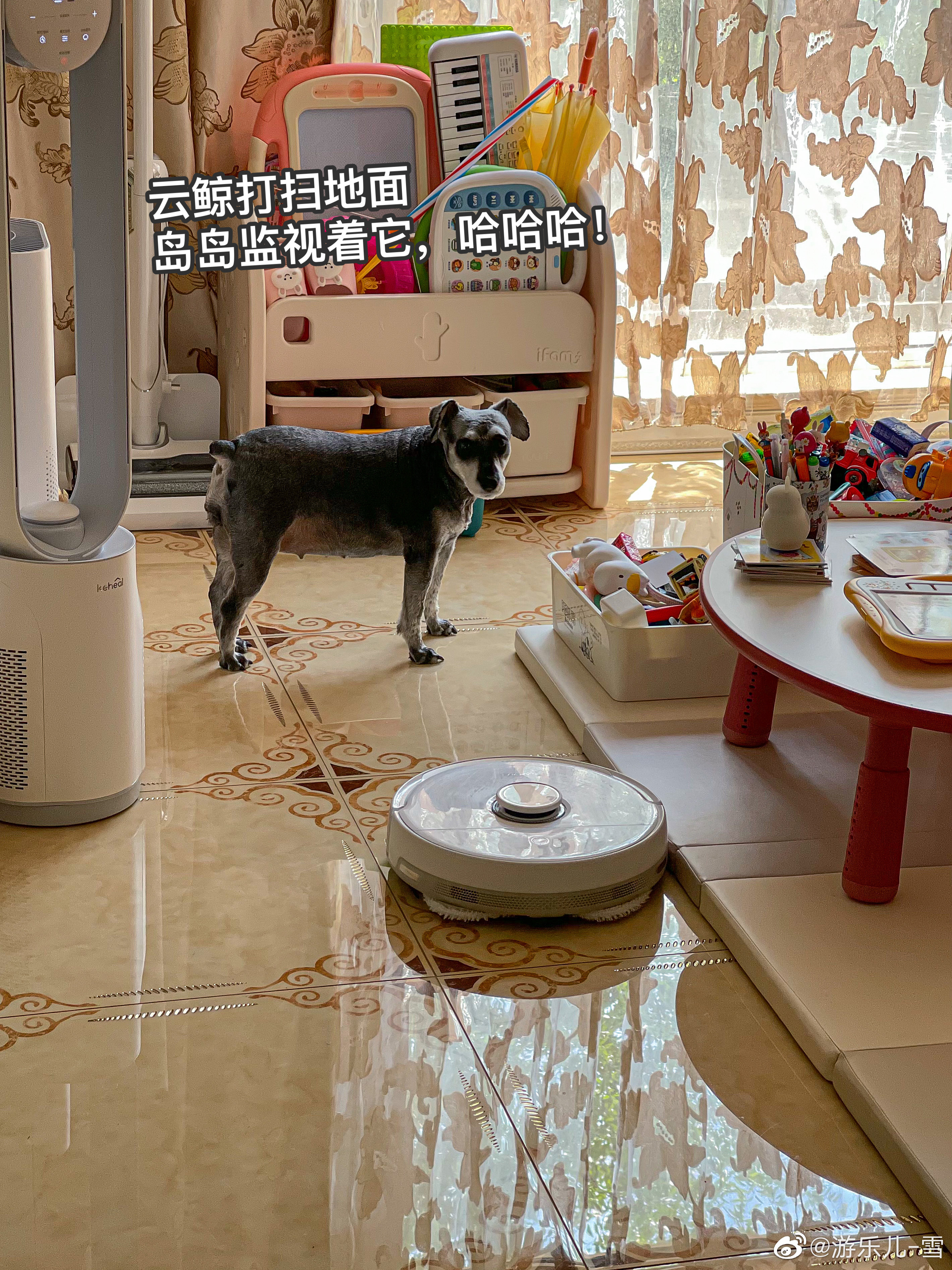 1.把屋子彻底打扫一下迎接周末,云鲸拖地ing,乔乔放学回来,安心光脚丫玩耍。