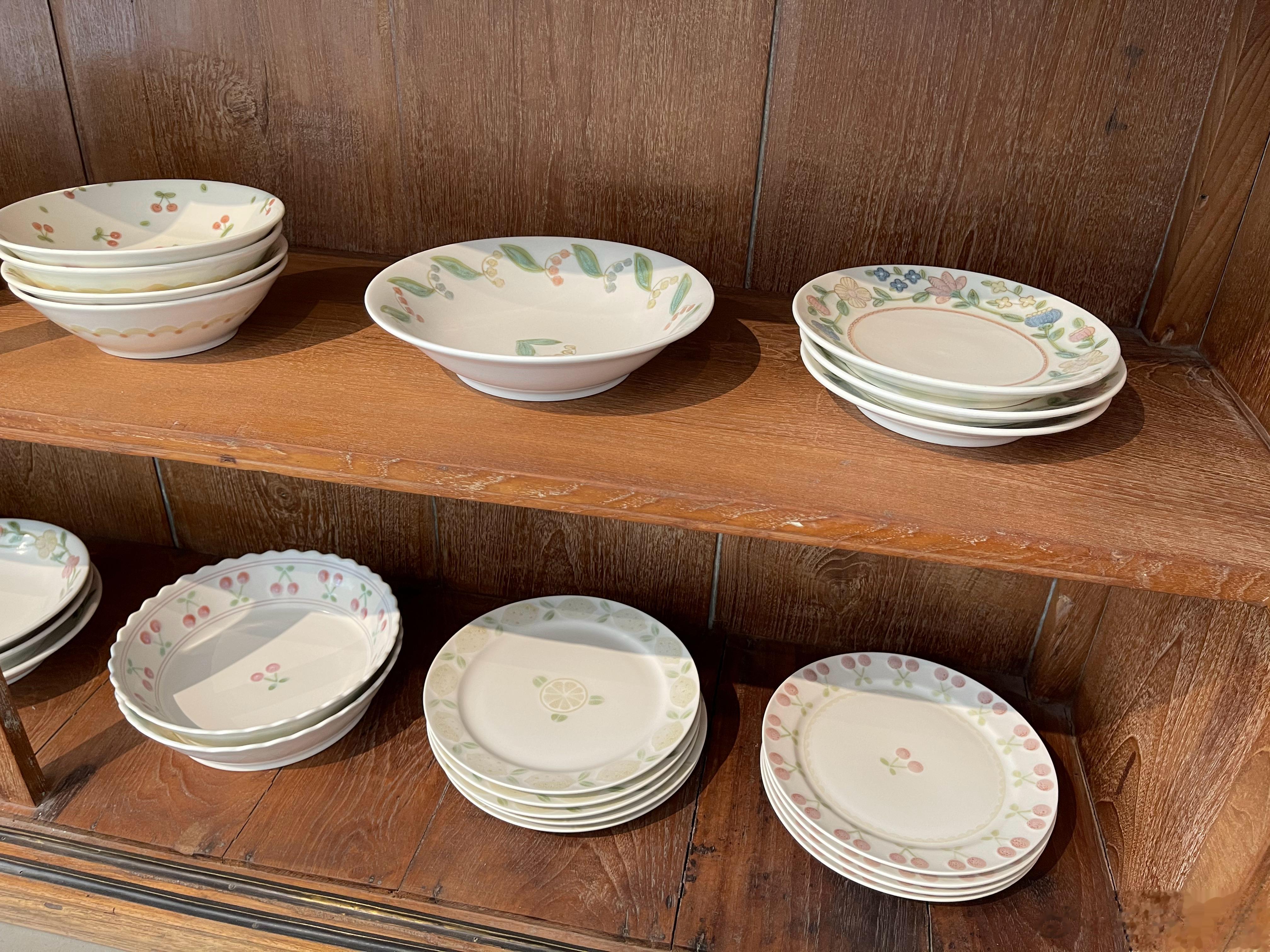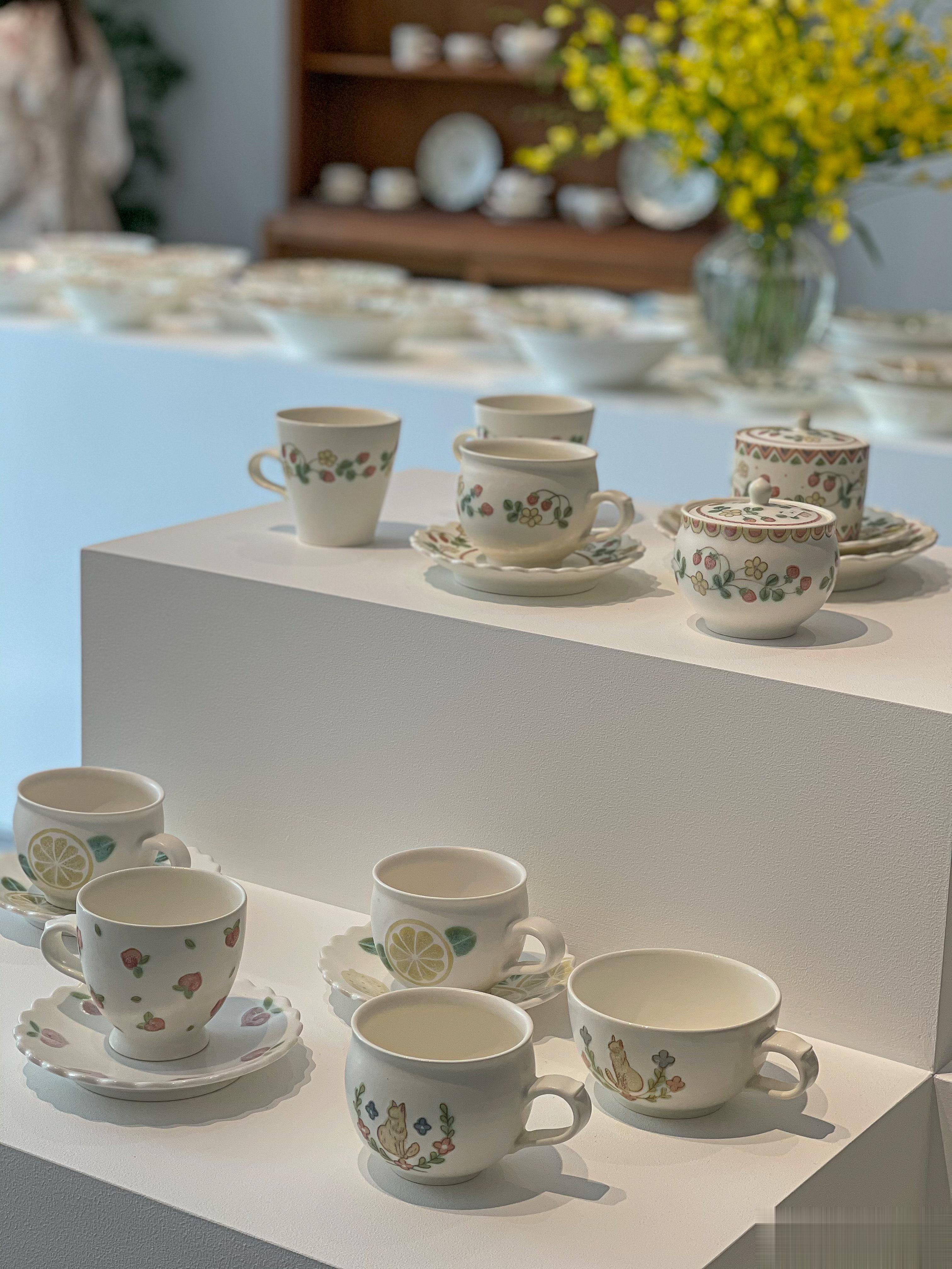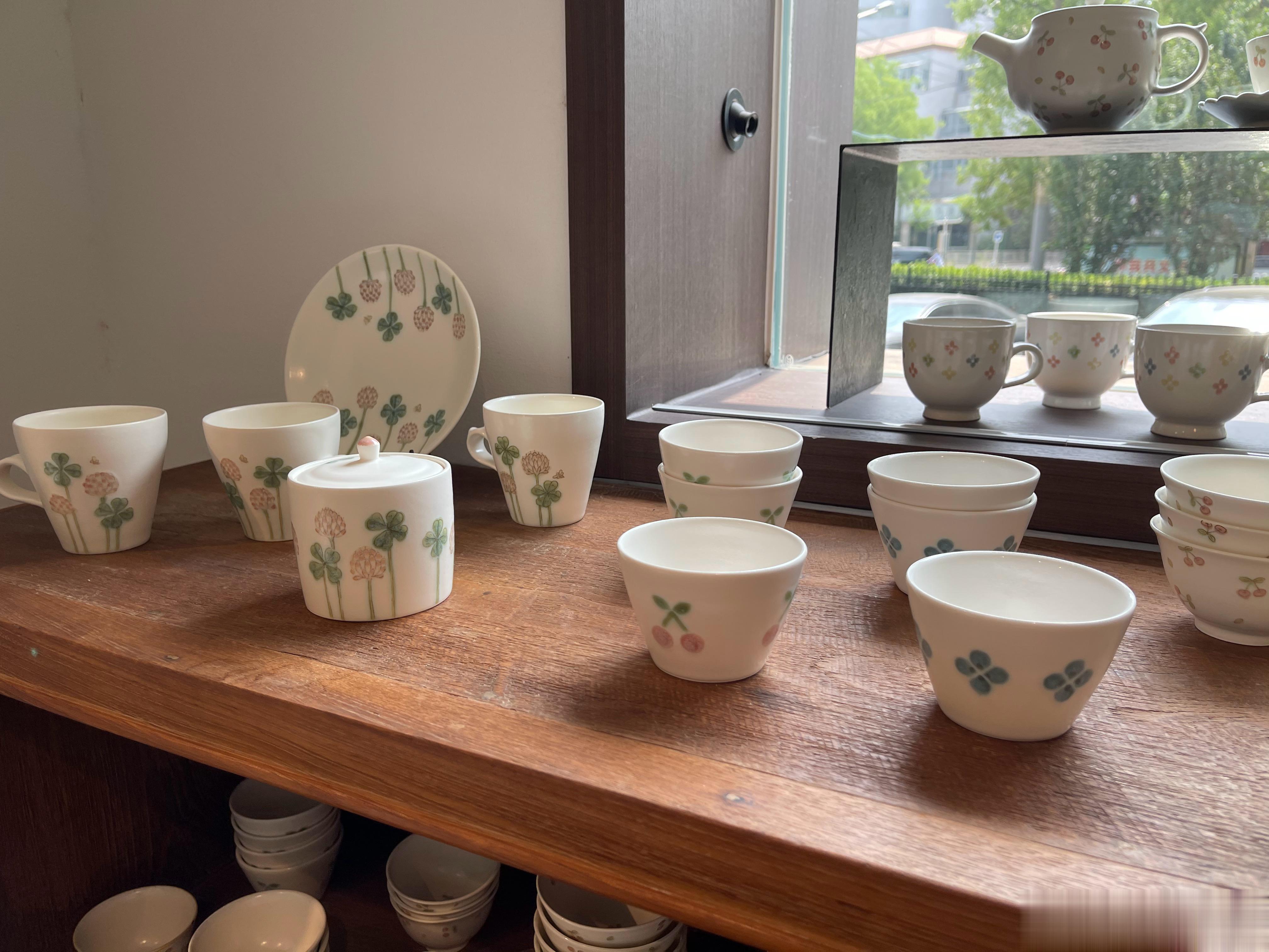 一进去就眼花缭乱了,动物系,水果系,花花系列都有。杯子有很多杯型,咖啡的,喝茶的……碗呀盘子呀,各种尺寸,很实用的大小。