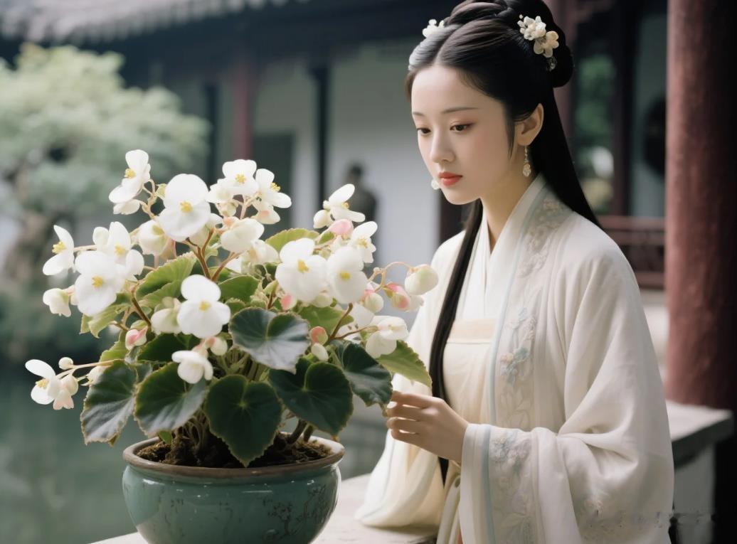 《红楼梦》中,有关于秋海棠的诗会,可见在雍正乾隆时期,就已经培育出了白色的秋海棠花。当然那是贵族之赏。