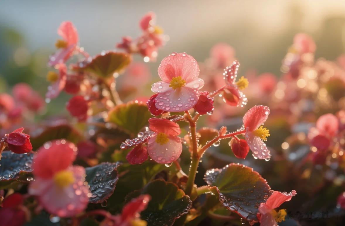 秋海棠开放在多露的秋天,笑在秋风里。