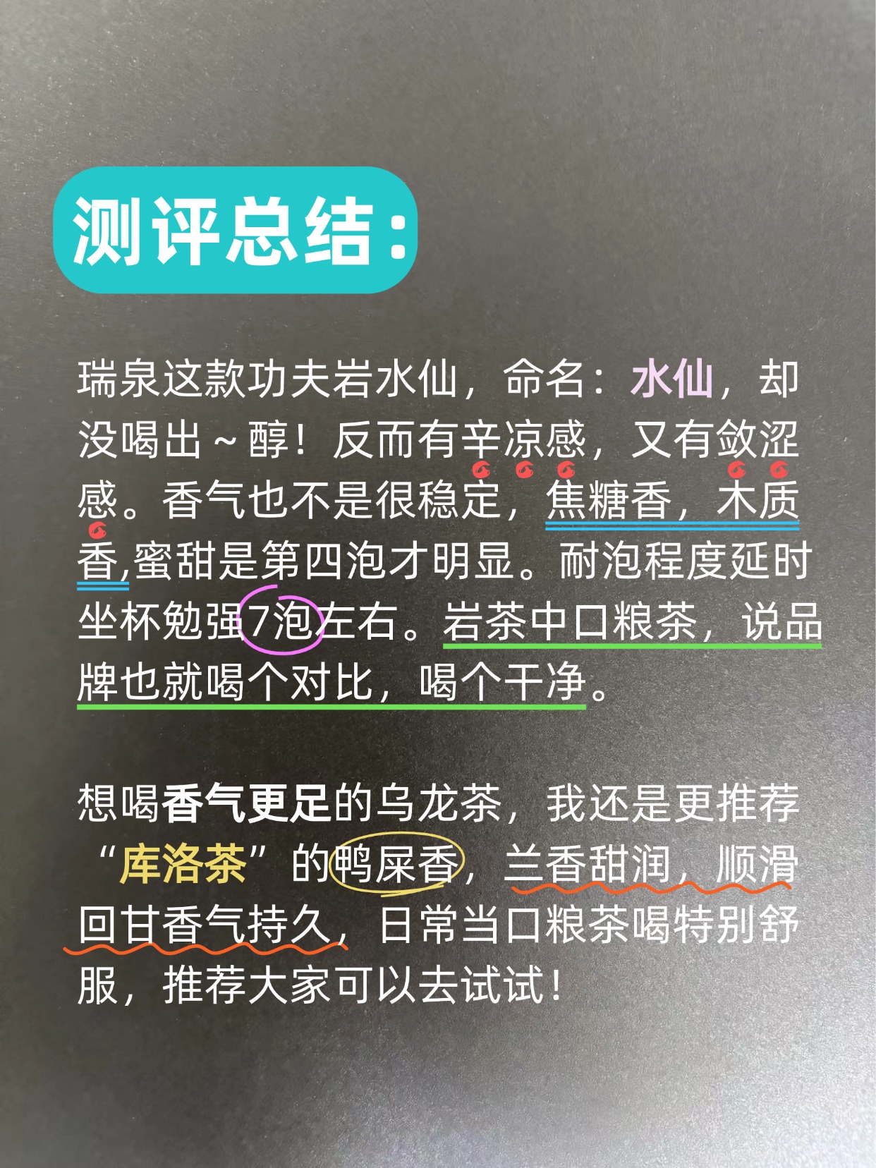 想喝香气更足的乌龙茶,我还是更推荐“库洛茶”的鸭屎香,兰香甜润,顺滑回甘香气持久,日常当口粮茶喝特别舒服,推荐大家可以去试试!