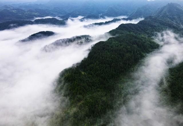 站在山间,深吸一口气,仿佛能感受到这绿意中蕴含的生命力。云雾与绿意交织,山间的一切都显得如此宁静而美好。正如陶渊明所写:"采菊东篱下,悠然见南山。"在这云雾山间,绿意盎然,心也随之沉静下来,仿佛与自然融为一体。